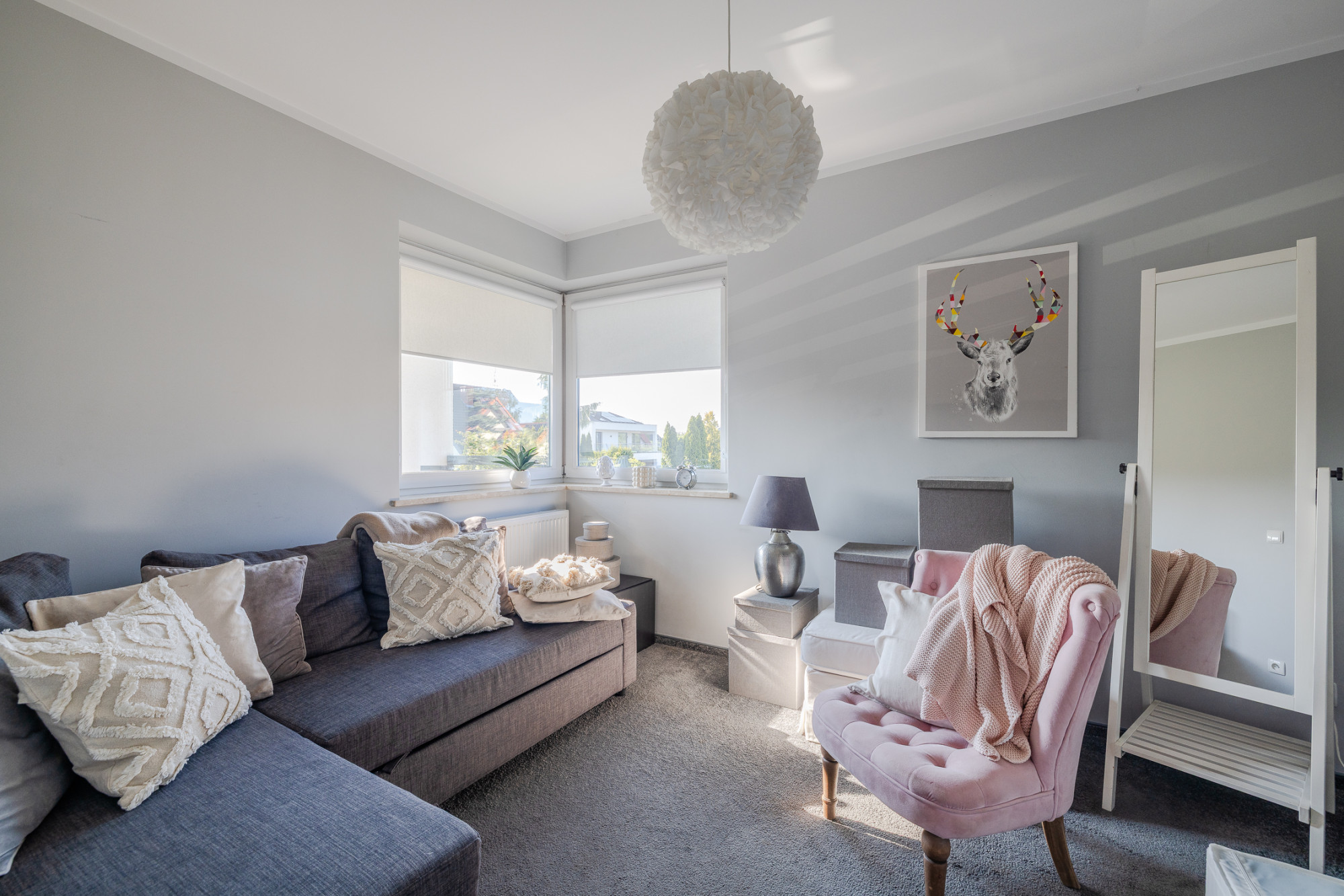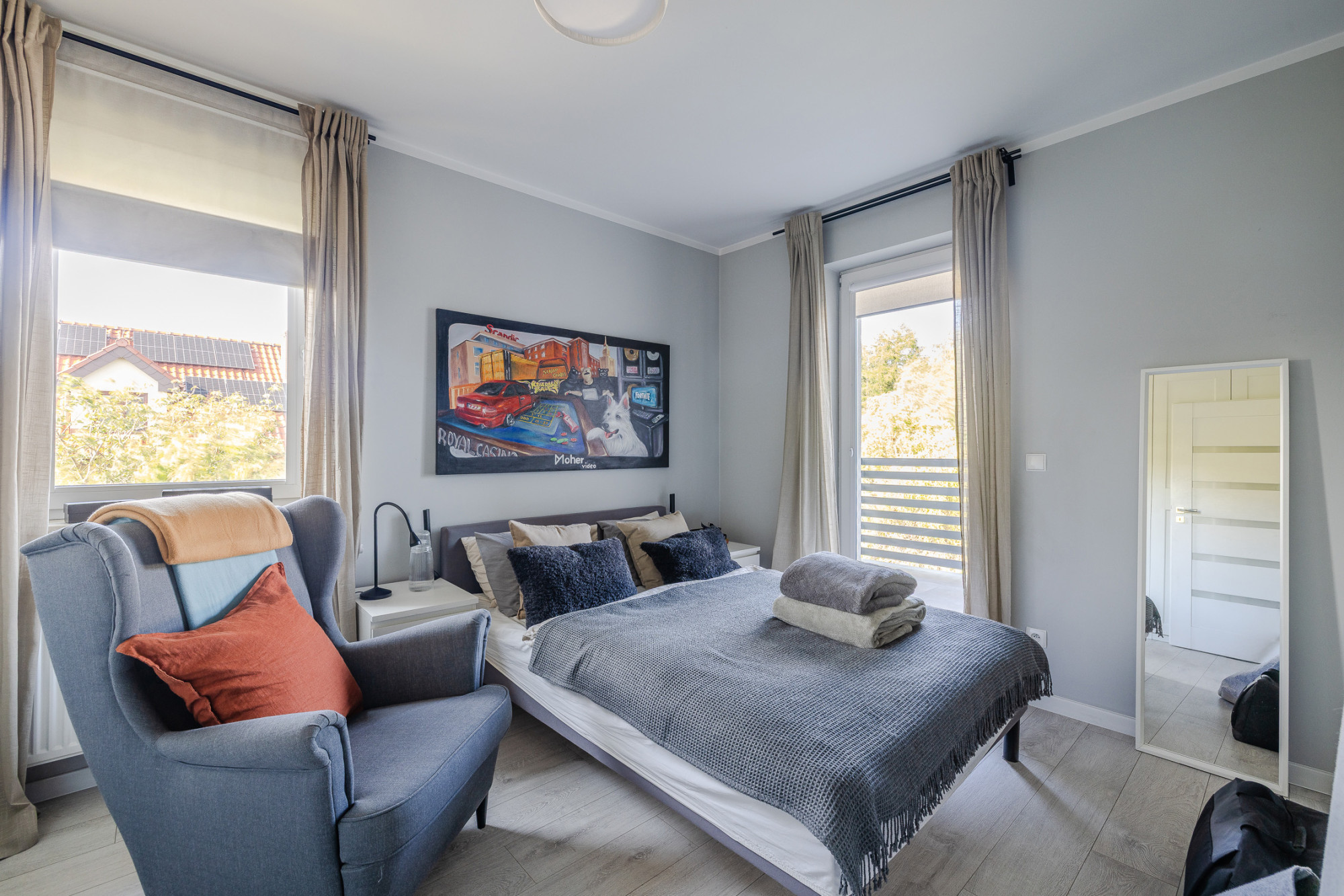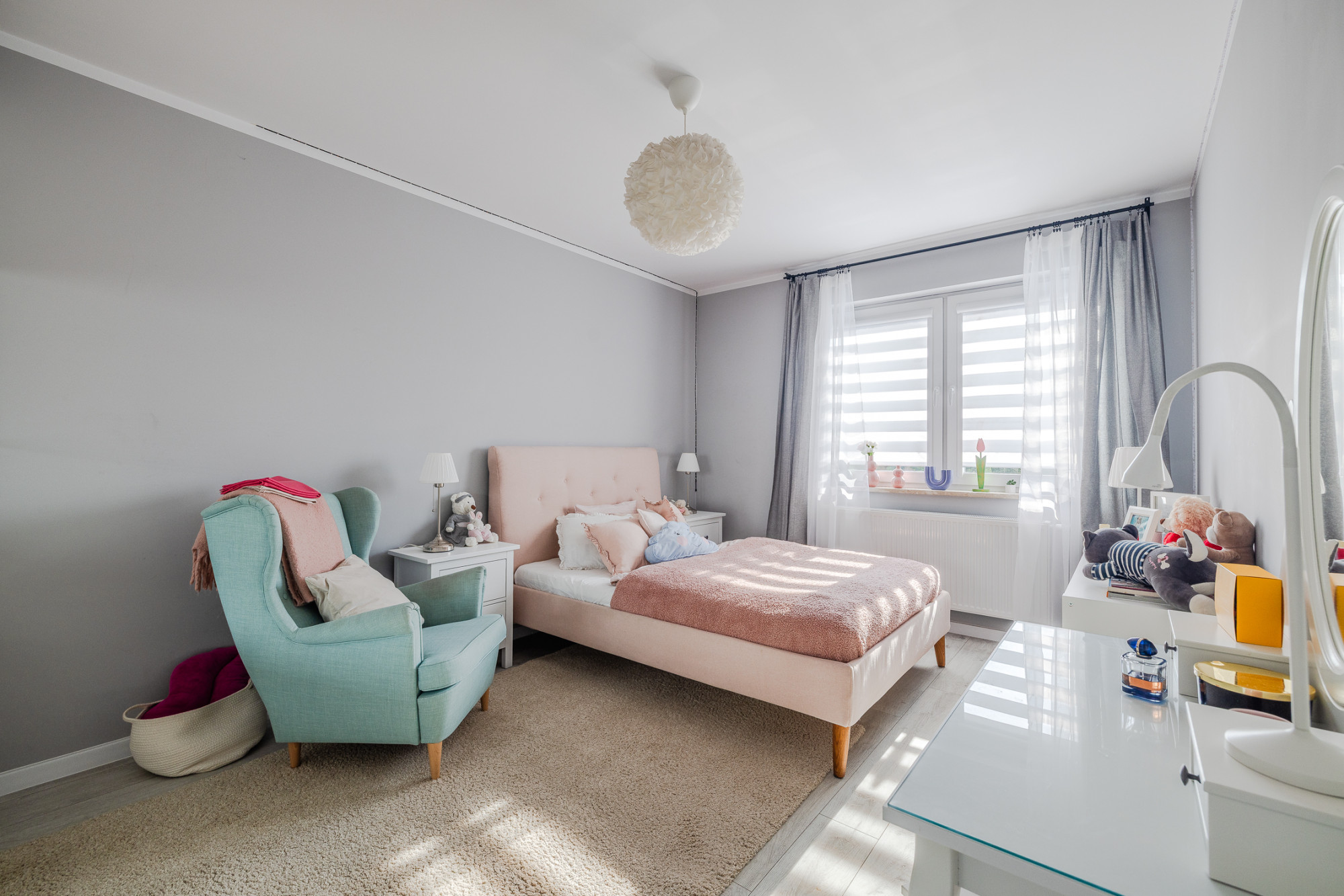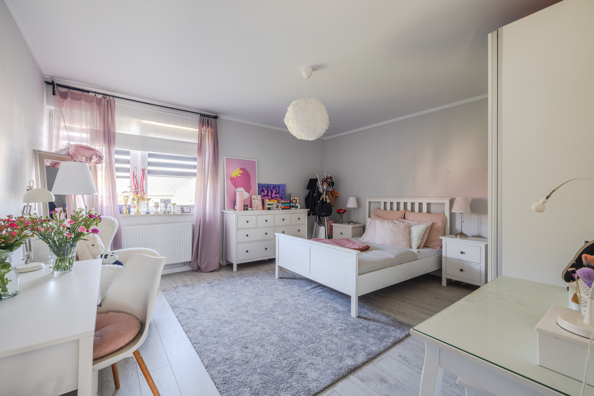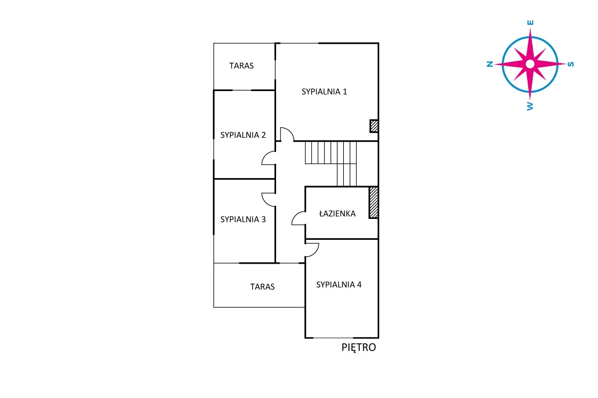 – Powierzchnia użytkowa 1 pietra to 87,57 m2 składają się na nią 4 duże, przestronne sypialnie, łazienka i korytarz.