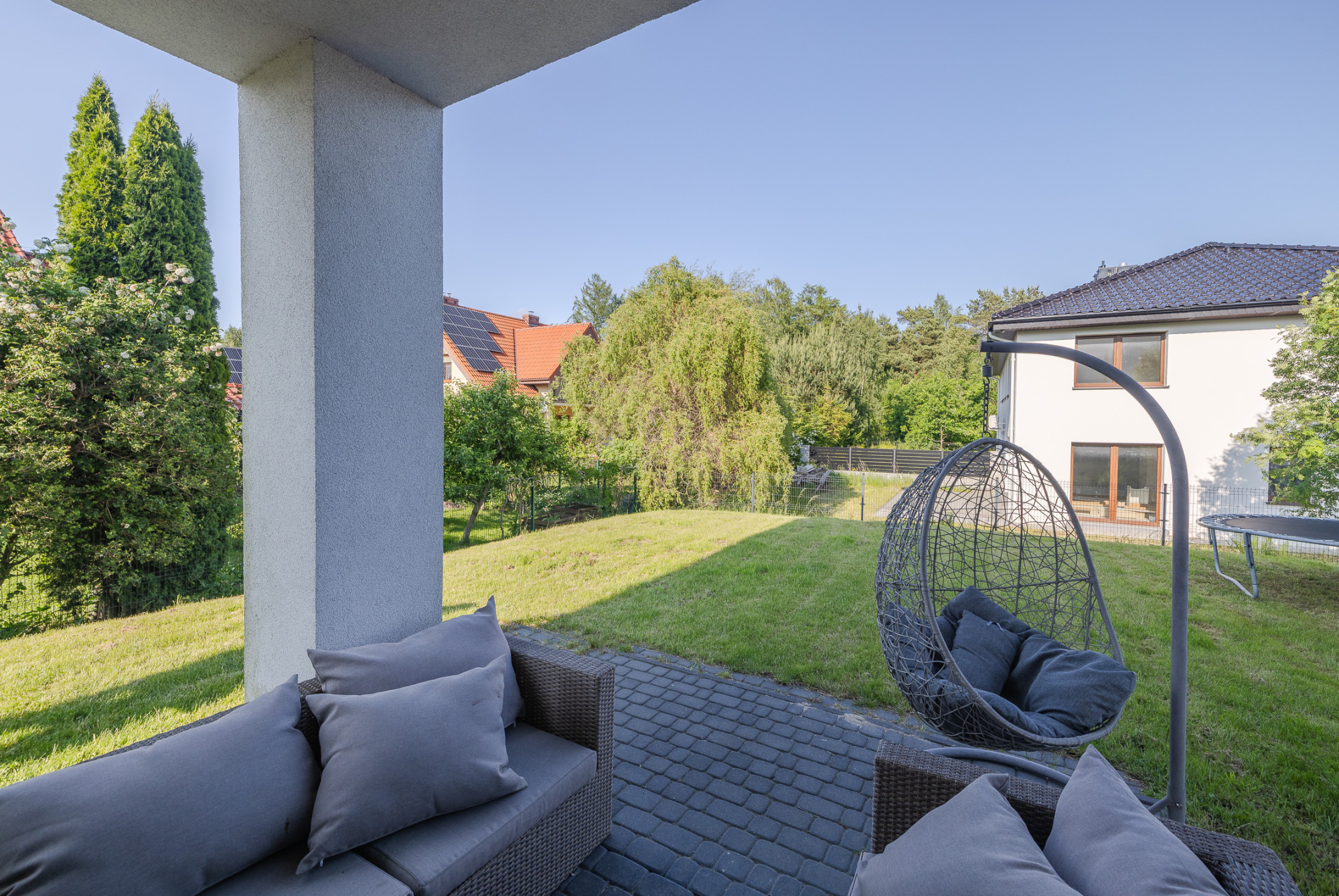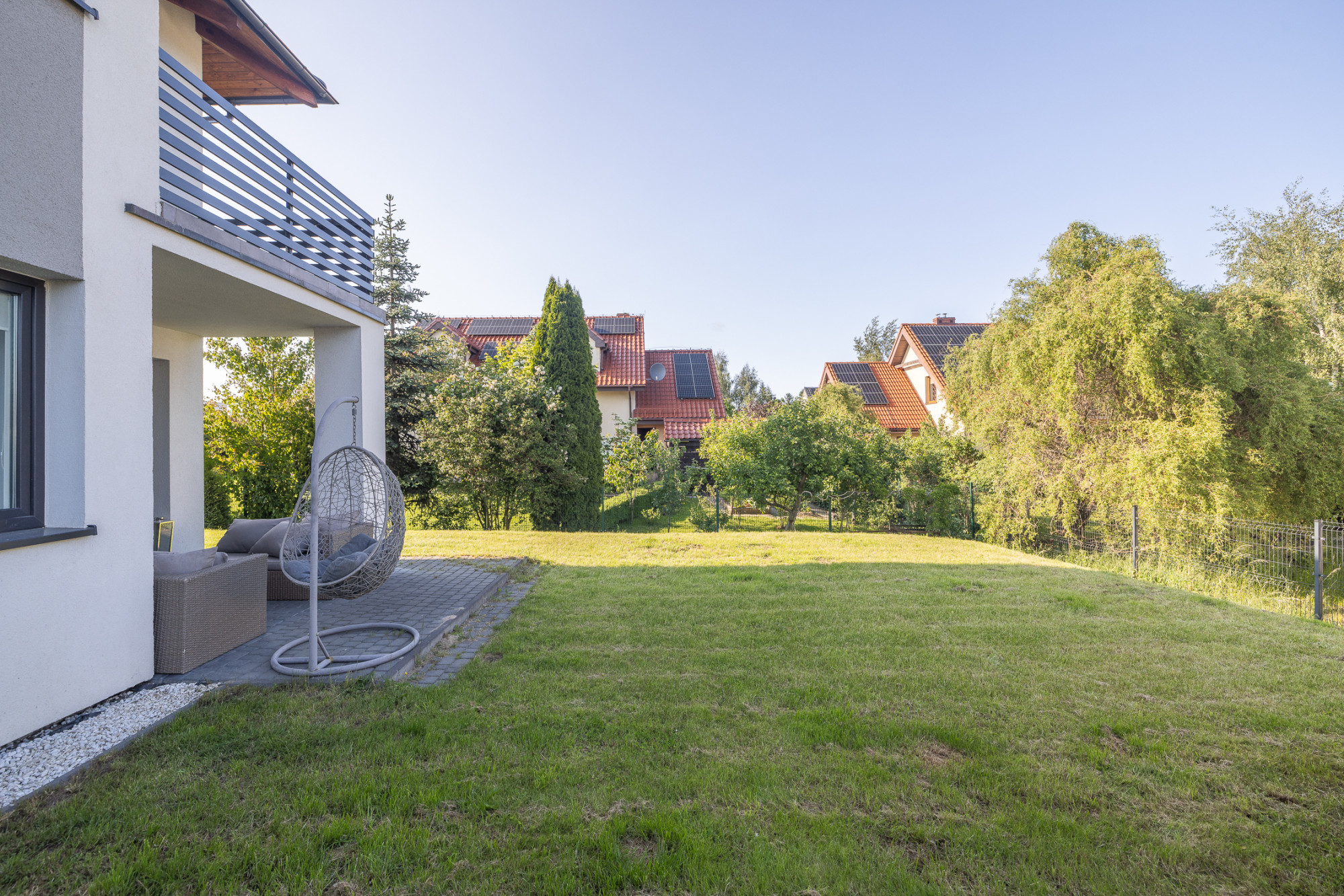 Dom zlokalizowany w cichej i spokojnej okolicy, na granicy Banina i Dąbrowy Miszewskiej. Banino to prężnie rozwijająca się miejscowość granicząca z Rębiechowem, gwarantująca szybki dojazd do Trójmiasta i lotniska. Przystanek autobusowy w odległości 7 minut drogi piechotą od domu. W okolicy pełne zaplecze handlowo-usługowe, lokalne sklepy, kawiarnie, restauracje, apteki, salony fryzjerskie, przychodnia zdrowia a dla najmłodszych liczne przedszkola i nowa szkoła. Dla osób lubiących aktywnie spędzać czas okoliczne lasy zapraszają na spacery i przejażdżki rowerowe.