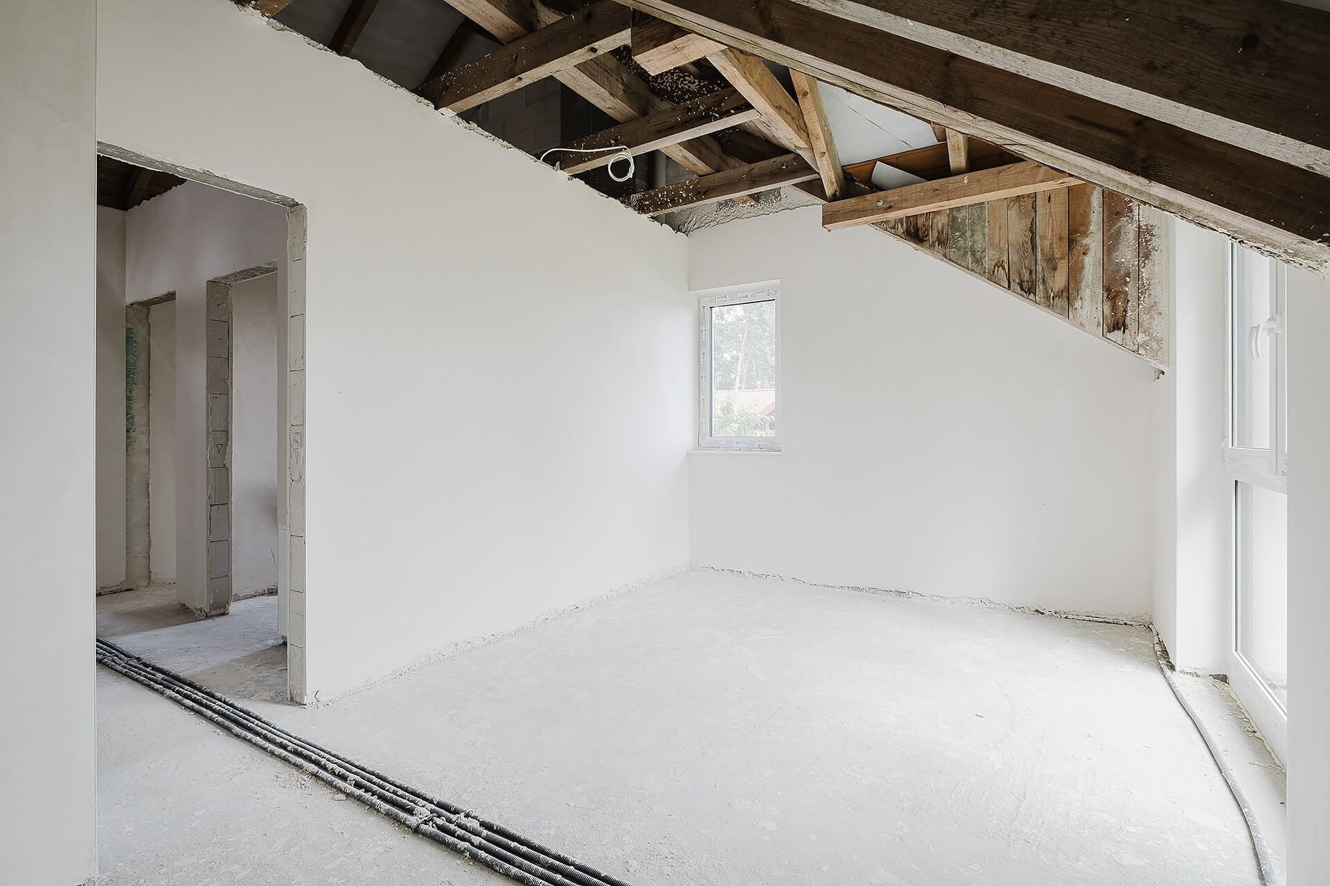 * okna: pionowe PCV trzyszybowe, połaciowe drewniane
