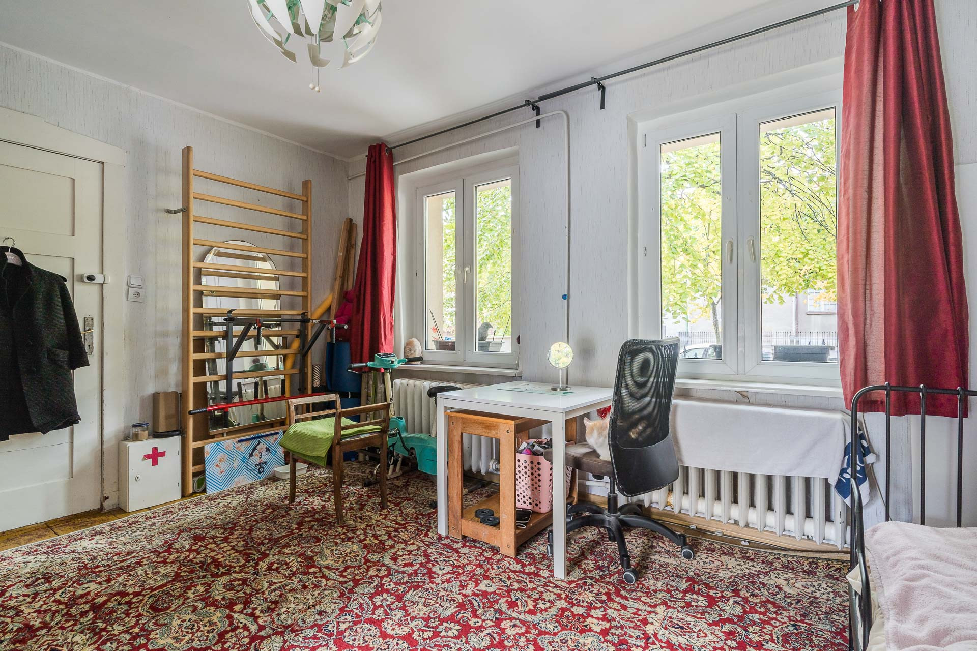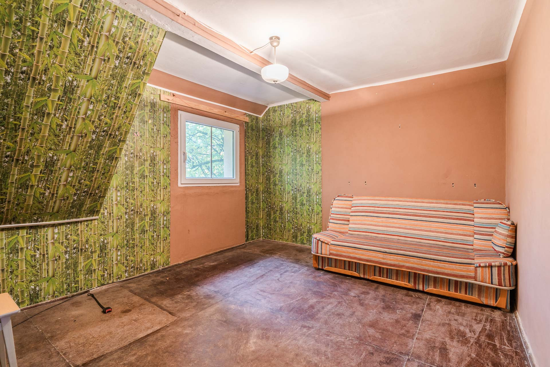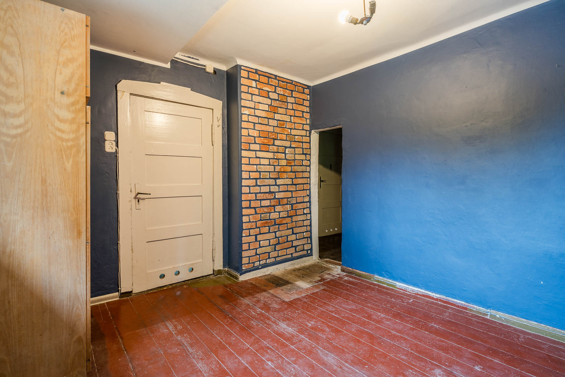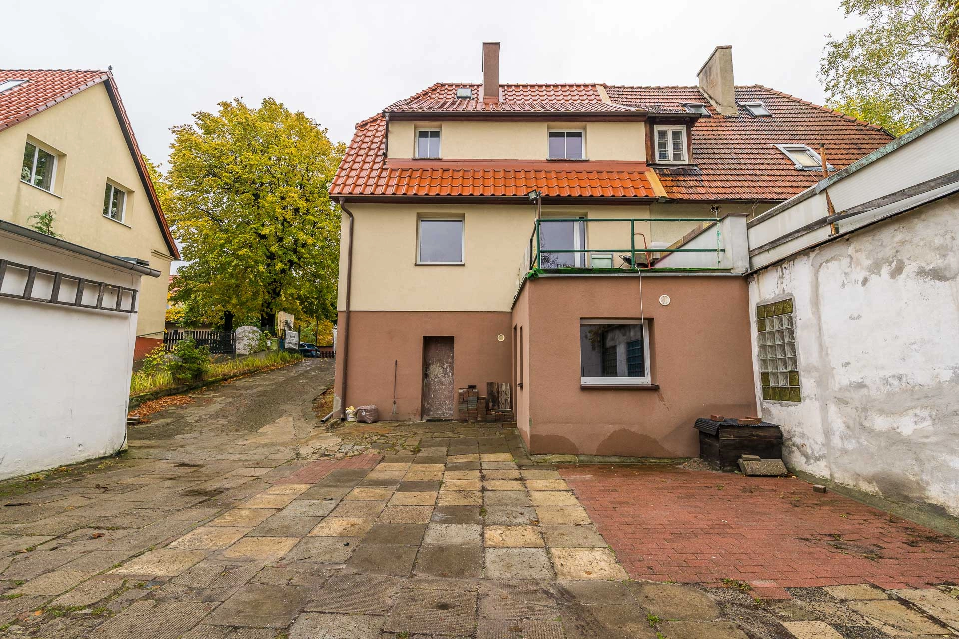 DOM: dwukondygnacyjny bliźniak, całkowicie podpiwniczony, z niewielkim strychem do kapitalnego remontu.