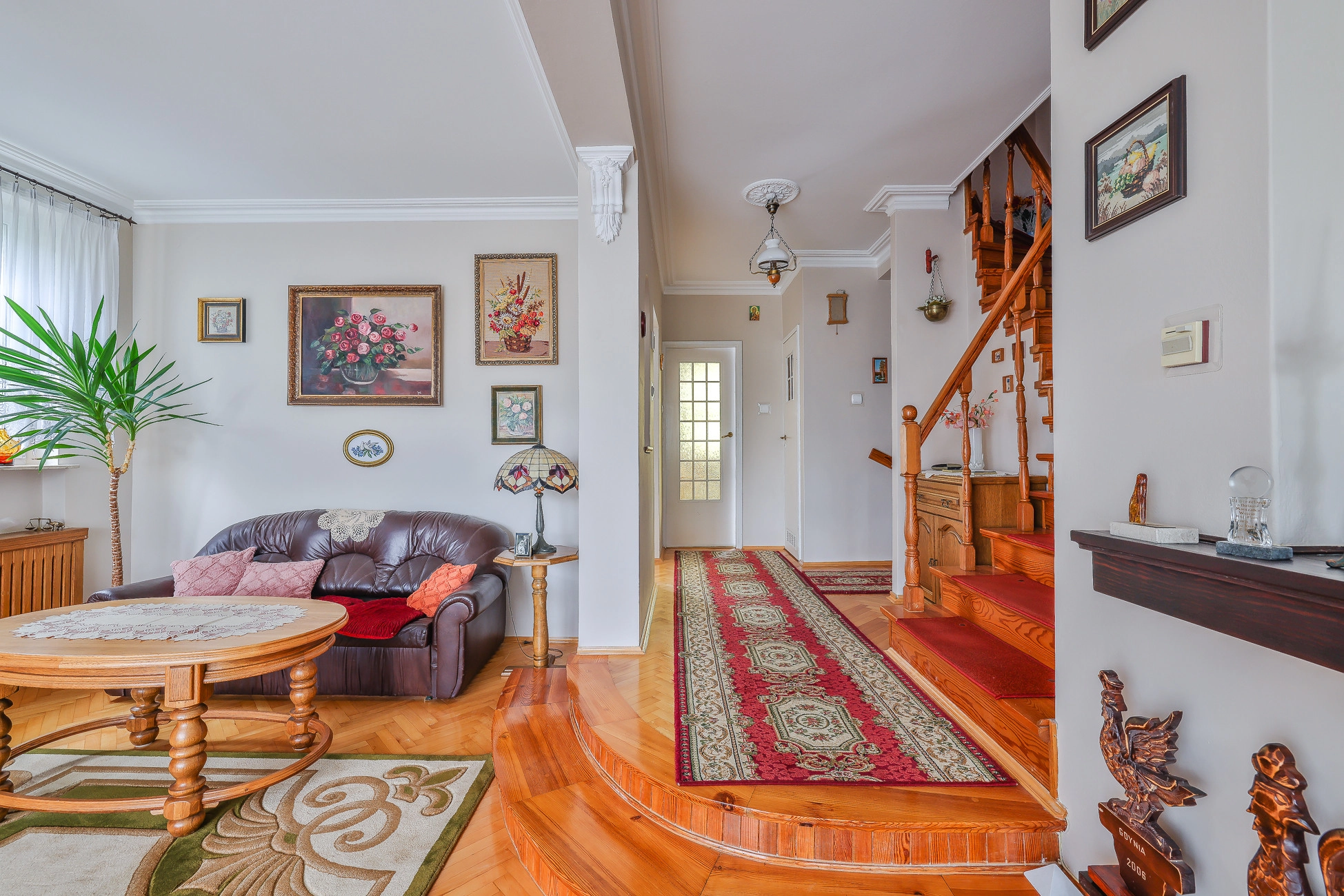 DOM: w zabudowie bliźniaczej, 3-kondygnacyjny, w świetnej, spokojnej lokalizacji w Gdyni Redłowie. Dom został wybudowany z cegły, dach dodatkowo ocieplony gazobetonem, kryty blachą ocynkowaną ( odnowiony w 2022 roku). Od zewnątrz dom został ocieplony styropianem i pokryty sidingiem. Dom posiada instalację elektryczną miedzianą. Okna w budynku są plastikowe (3-szybowe). Powierzchnia całkowita domu to niespełna 193 m2, natomiast użytkowa to ok. 116 m2.