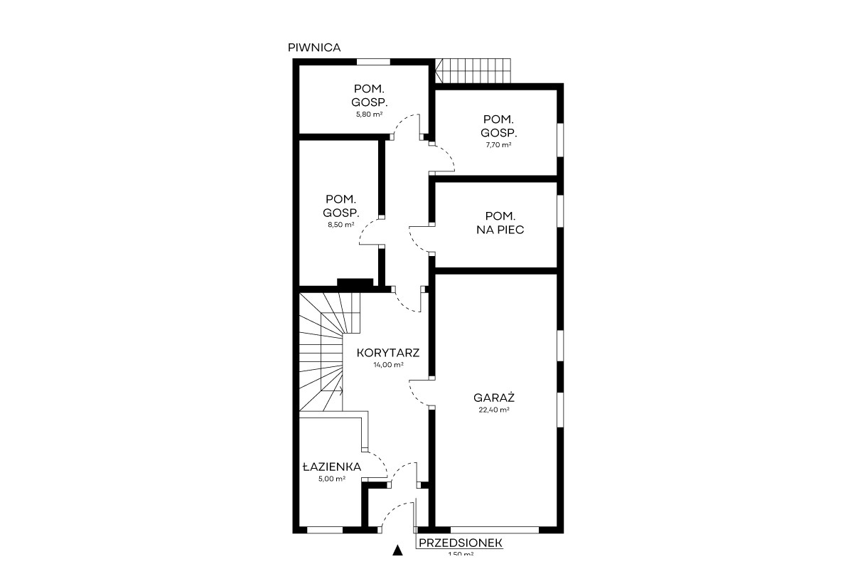 Piwnica użytkowa (77,10m2, wysokość pomieszczeń 2,20 m):