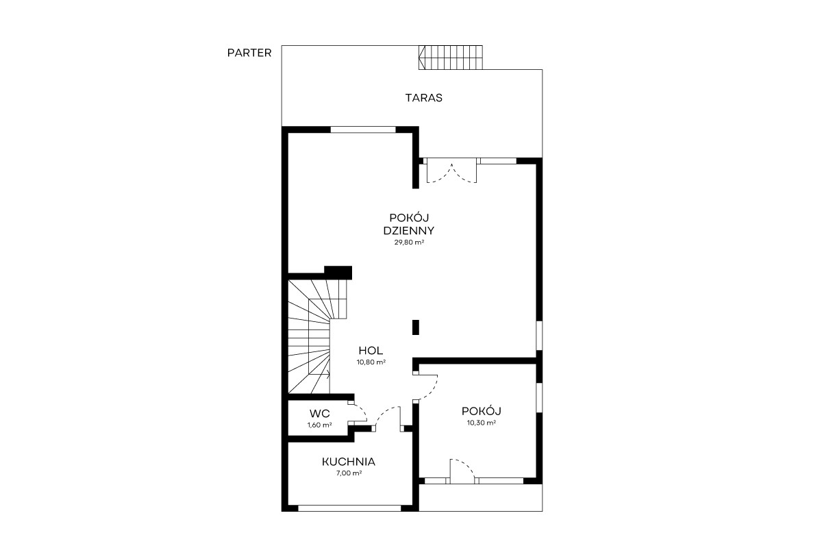 Parter (60,00 m2, wysokość pomieszczeń 2,60 m);