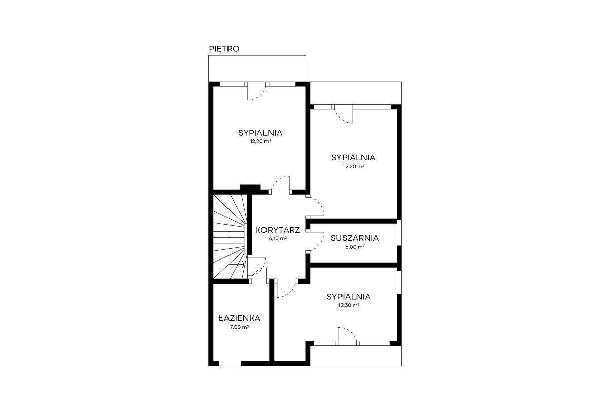 Piętro (55,80 m2, wysokość pomieszczeń 2,60 m)
