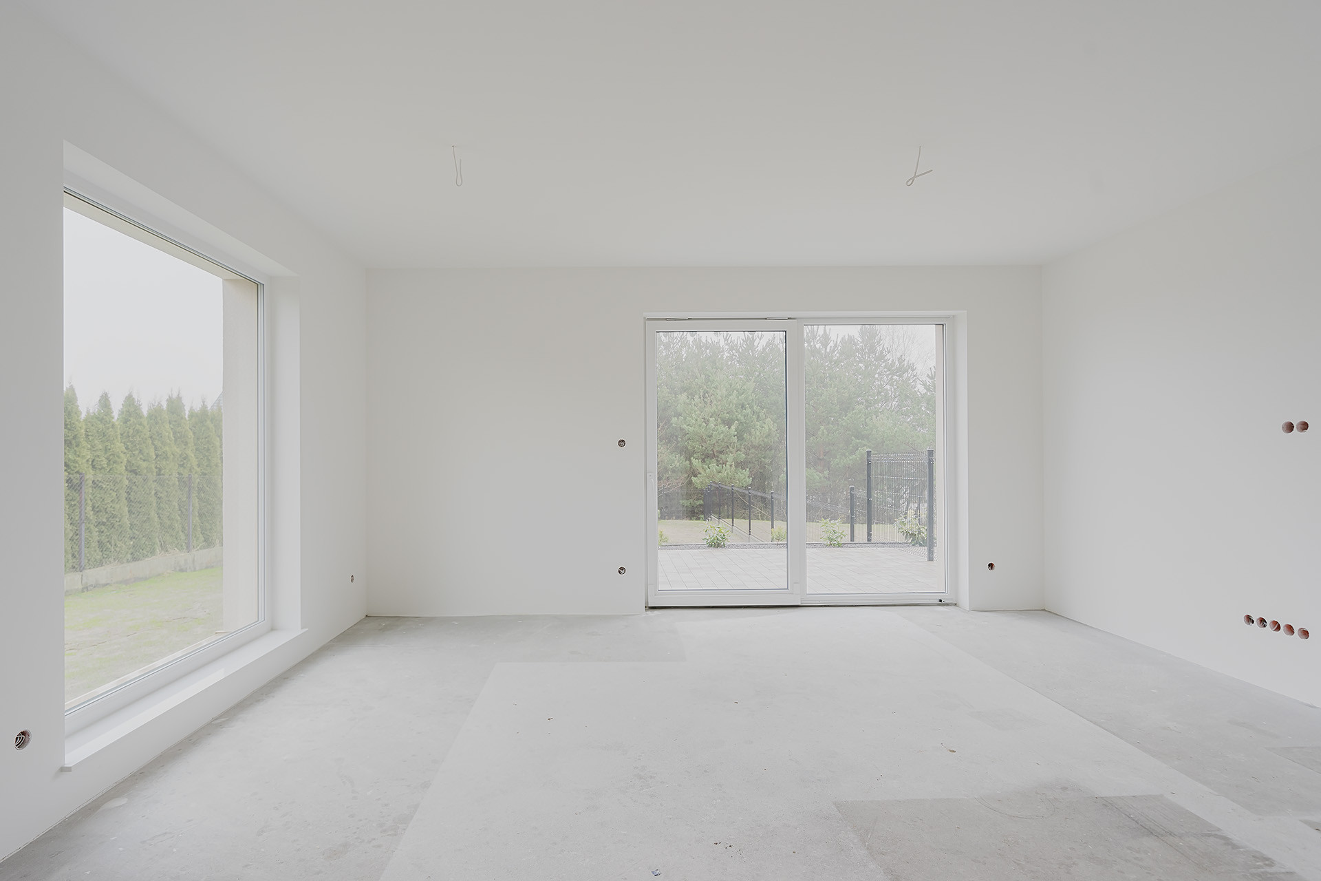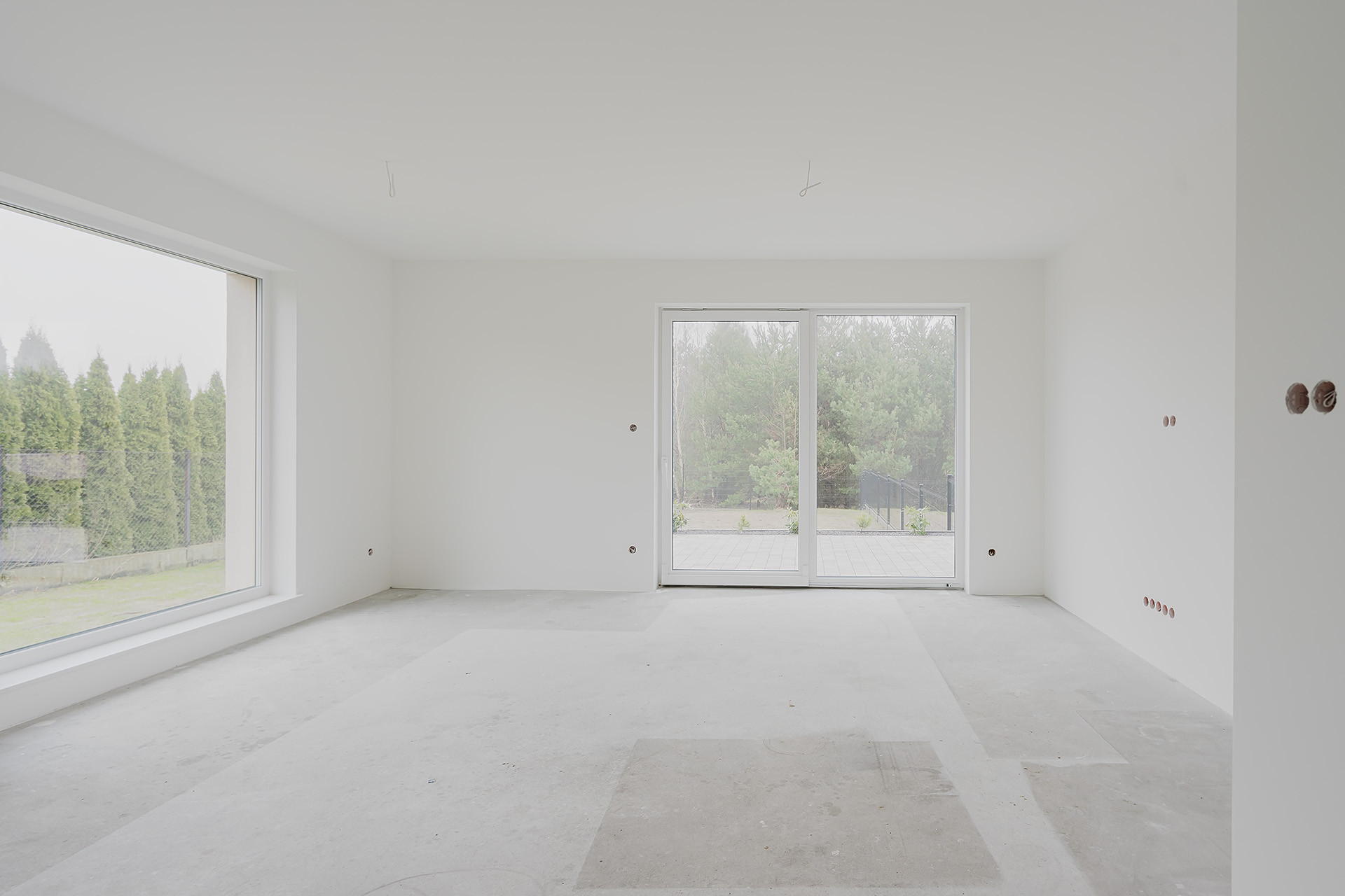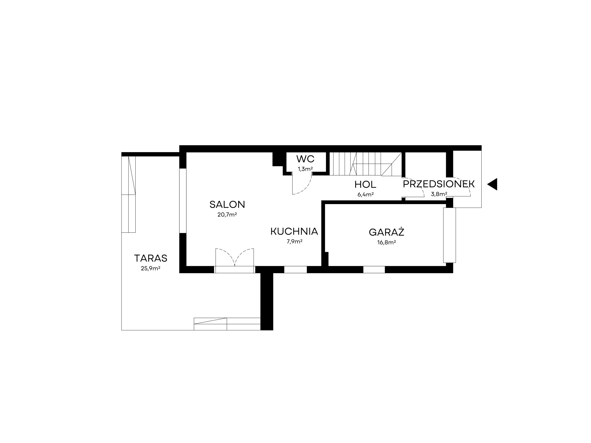 – salon z aneksem kuchennym i wyjściem do ogrodu