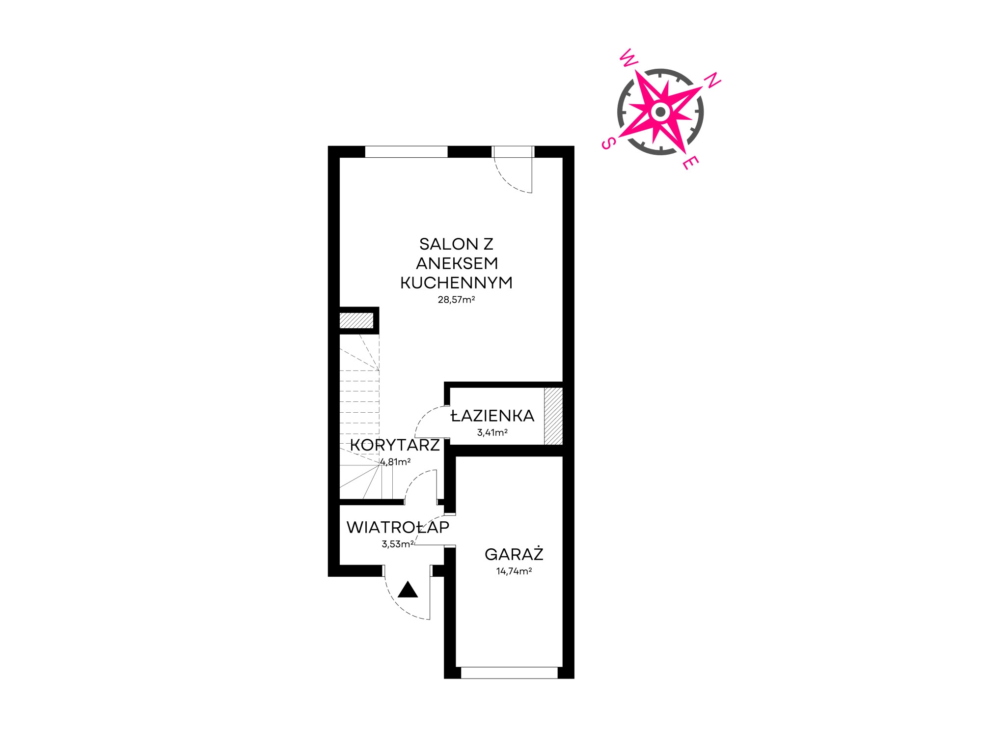 – Garaż jednostanowiskowy o powierzchni 14,74 m²