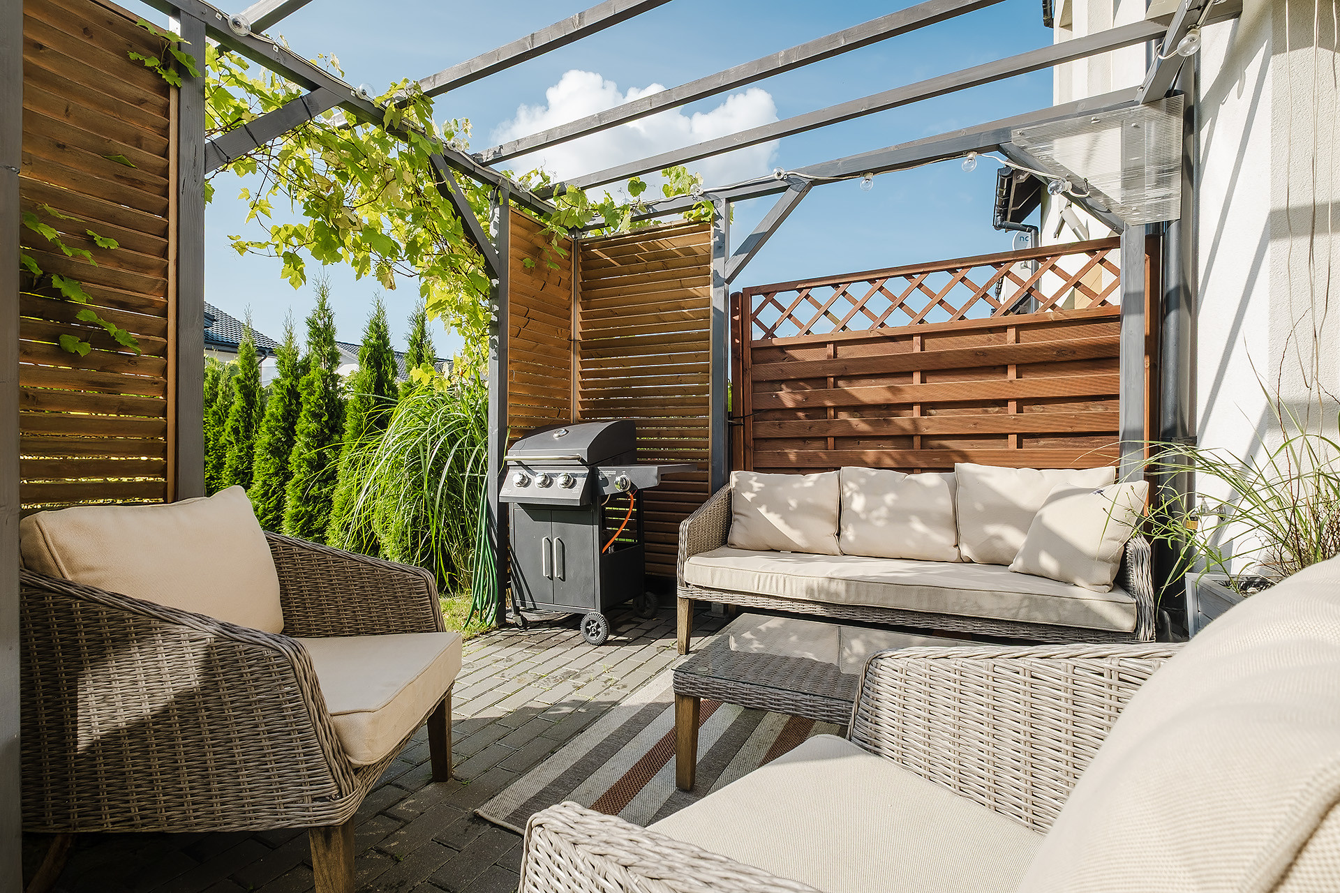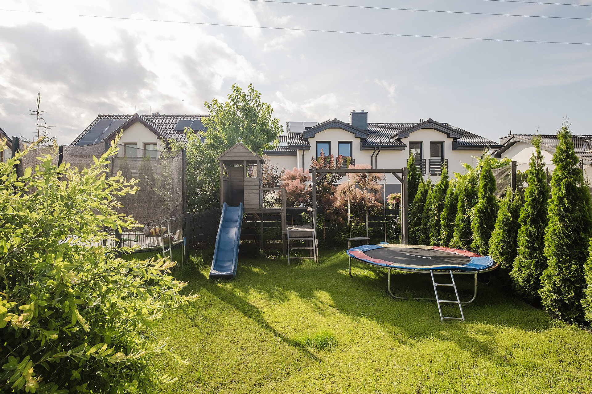 * ogrodzenie: nowoczesne panelowe od strony ogrodu, front bez ogrodzenia, brama garażowa automatyczna otwierana z pilota