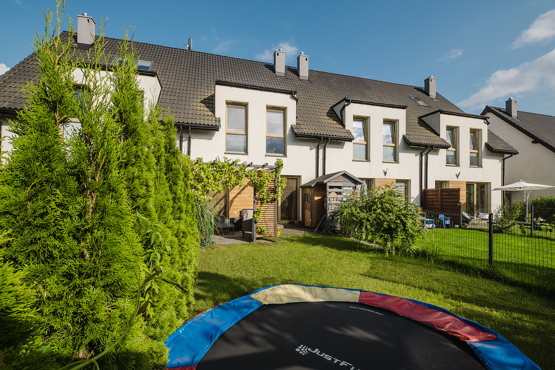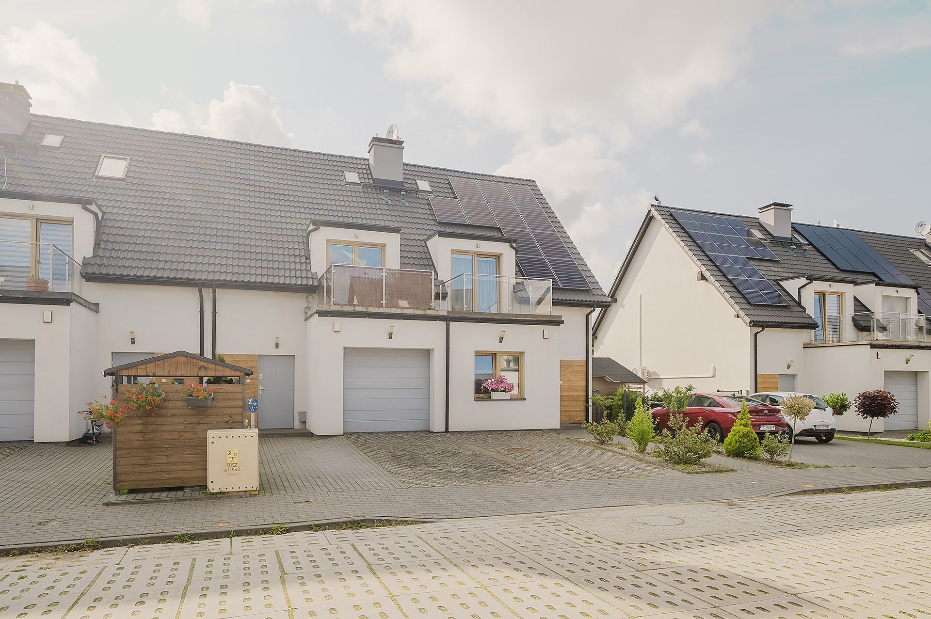 Dom jednorodzinny w zabudowie szeregowej o powierzchni całkowitej 107,31 m2 w miejscowości Borkowo gm. Pruszcz Gdański. Dom wybudowany został w 2017 roku na działce o powierzchni 200 m2. Ekspozycja salonu i ogrodu od strony zachodniej . Garaż jednostanowiskowy w bryle budynku o powierzchni 14,74 m2. Ogród o powierzchni około 80 m2 bardzo ładnie zagospodarowany: trawnik, kwiaty, nasadzenia, Czereśnie oraz zabudowa tarasu. Część tarasowo-rekreacyjna gwarantuje pełne nasłonecznienie od około g.11-12 czasu letniego do zachodu słońca. Podjazd wyłożony kostką. Zabudowa śmietnikowa.