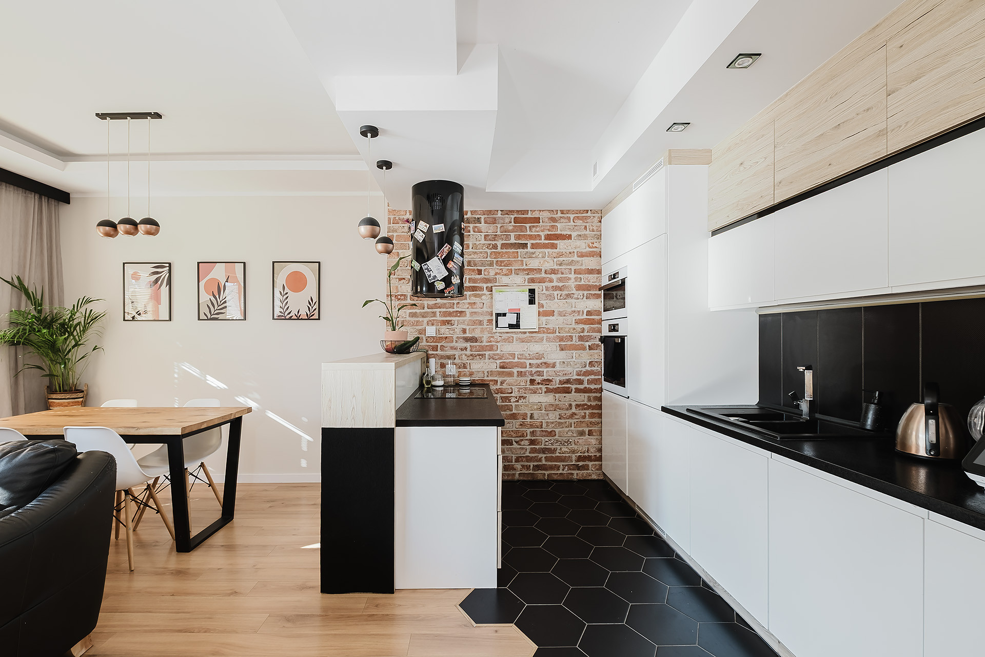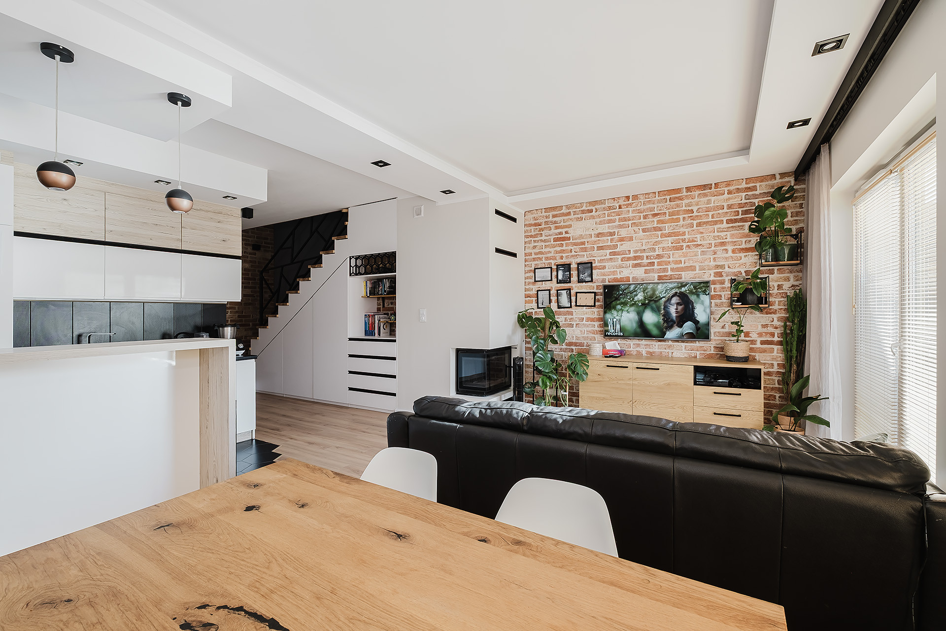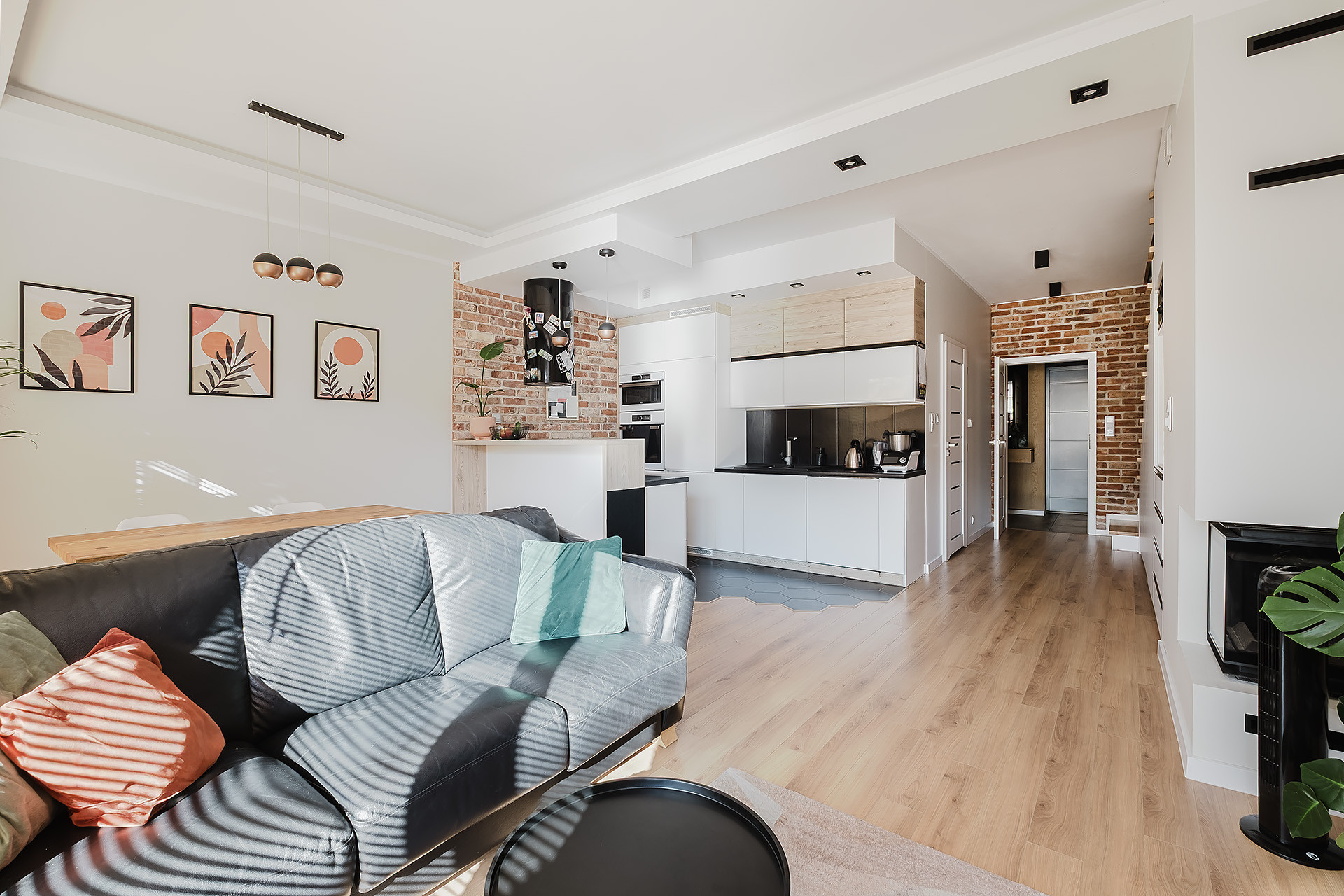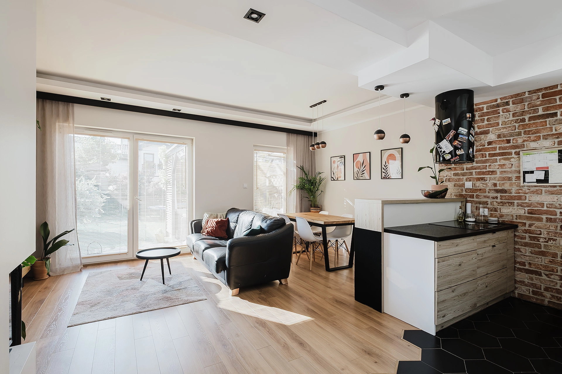 – Salon z aneksem kuchennym o powierzchni 28,57 m²