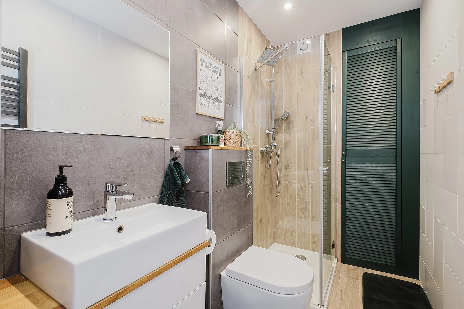 – Łazienka z prysznicem o powierzchni 3,41 m² (na planie kotłownia)