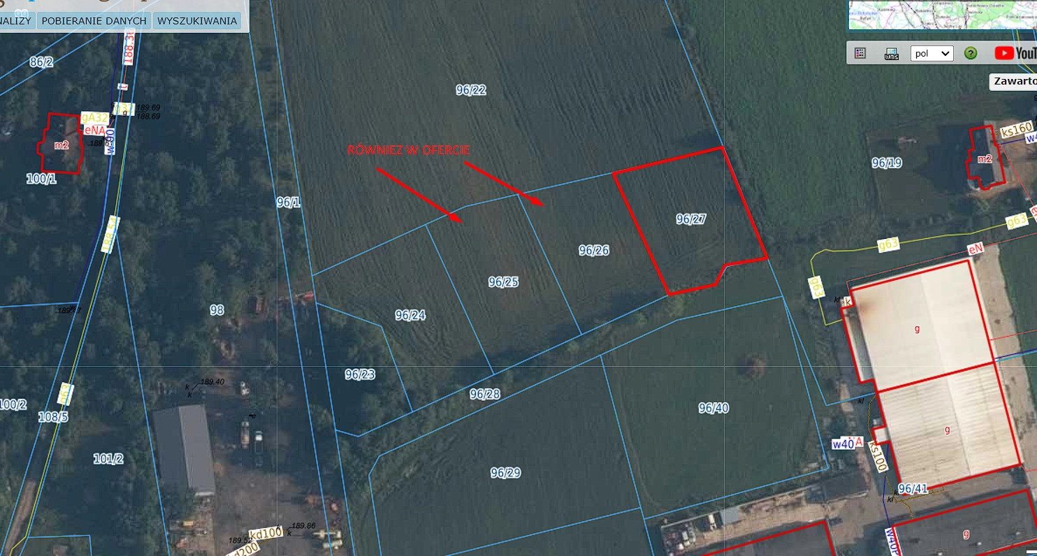 Istnieje możliwość dokupienia sąsiednich działek 96/25 o powierzchni 1430m2 i 96/26 o pow. 1263m2.