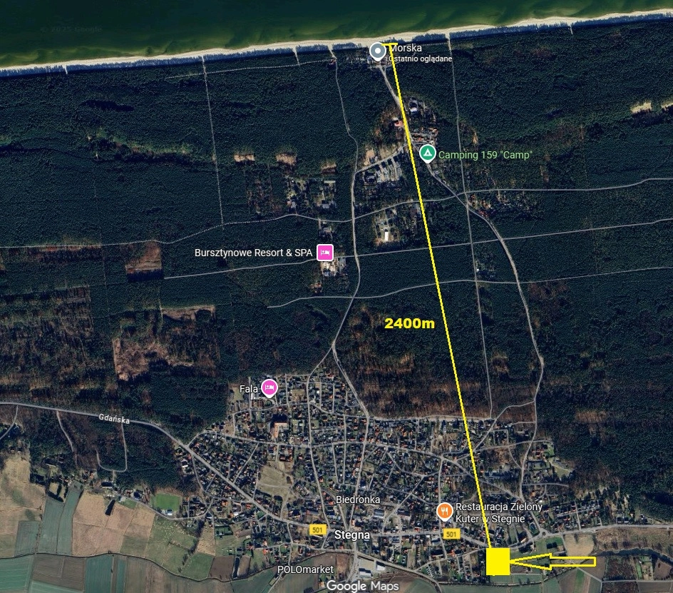 Działka oddalona około 3 km do morza. Doskonały dojazd , położona przy ul. Mahoniowej