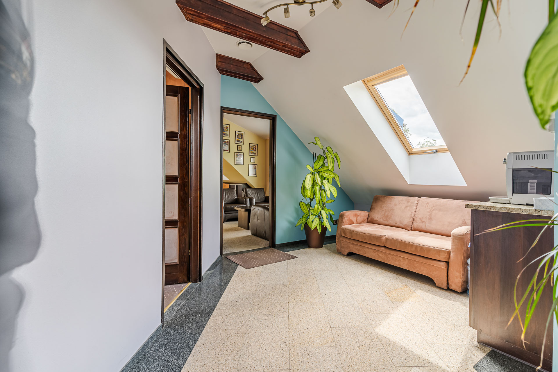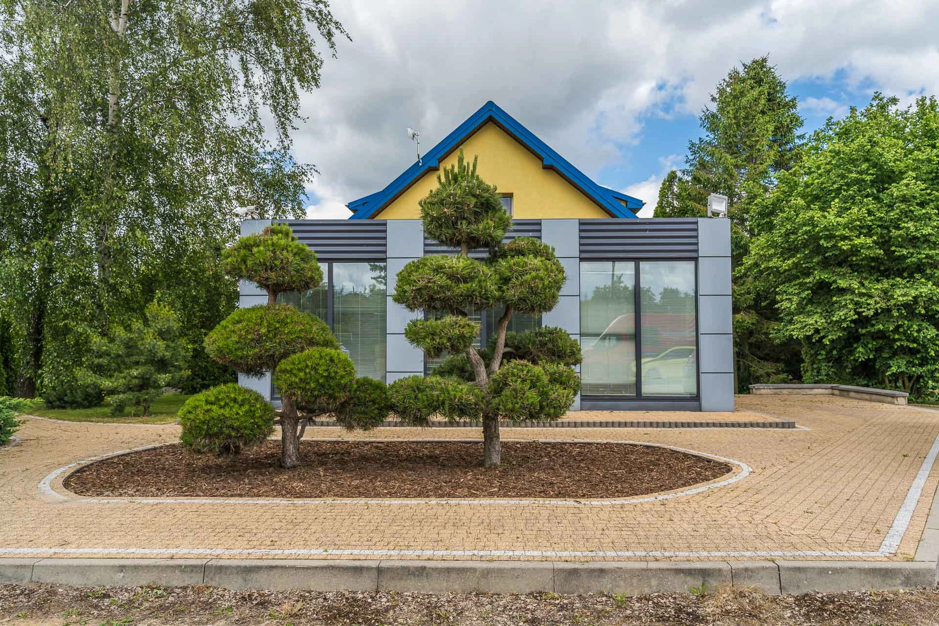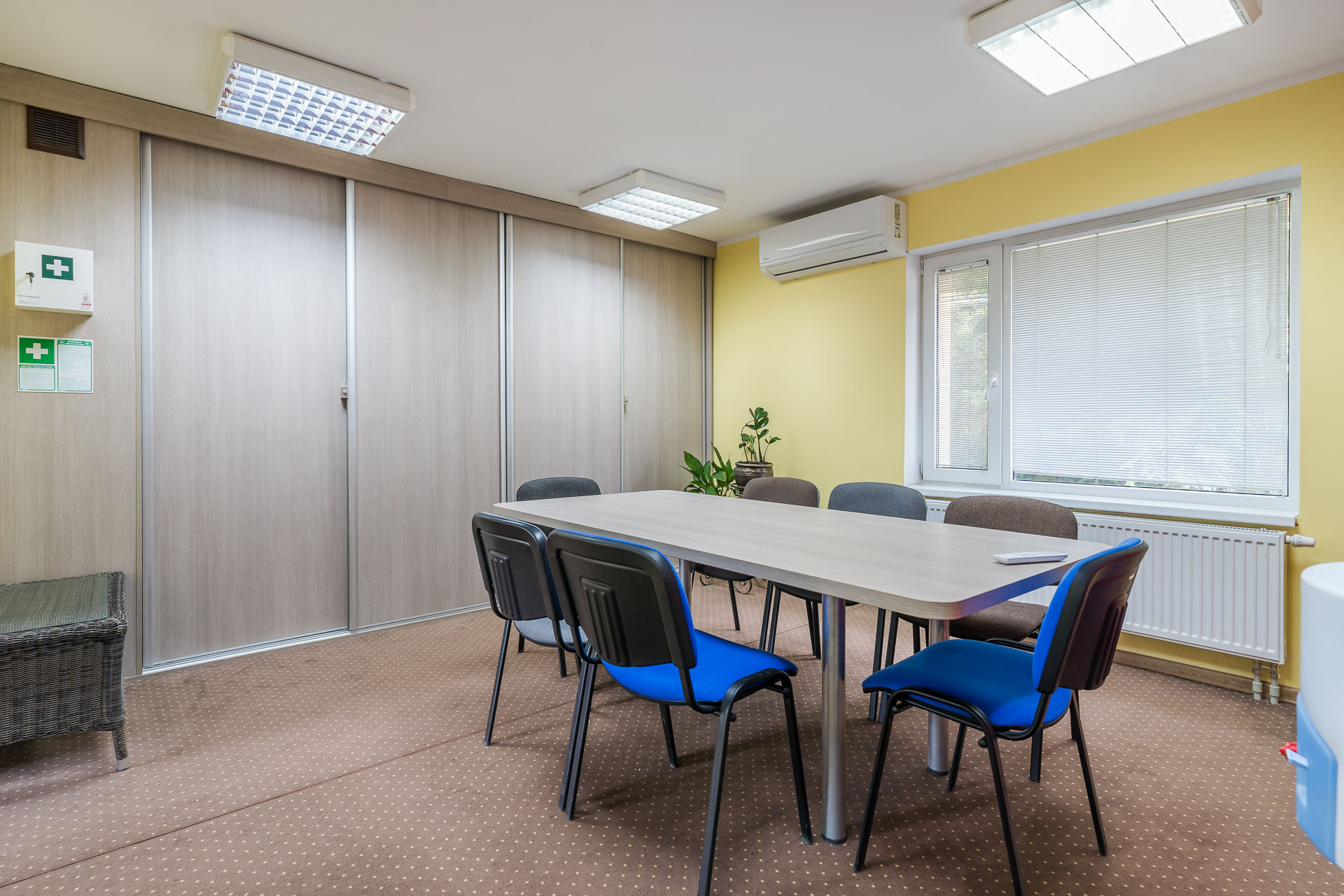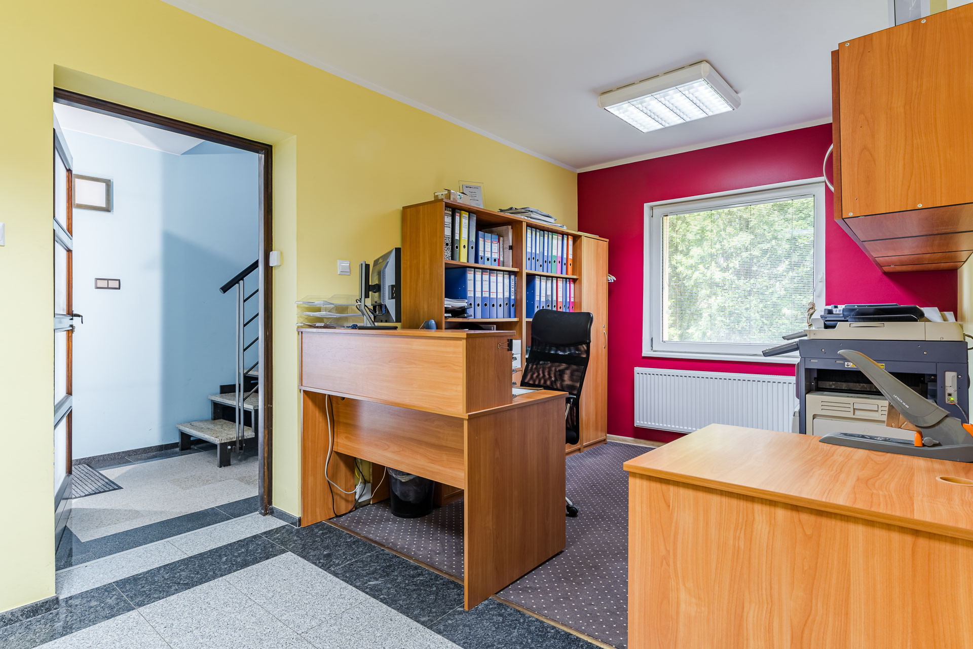 1-piętrowy, podpiwniczony o powierzchni całkowitej ok. 300 m2. Wybudowany w 1996 roku, a poddany generalnemu remontowi w latach 2009-2010 (dach, instalacje itp). W budynku 9 pomieszczeń przeznaczonych do pracy biurowej (floorboxy), w tym salka konferencyjna, 2 łazienki, aneks kuchenny oraz recepcja. W budynku dwa rodzaje ogrzewania: klimatyzatory z pompą ciepła typu split oraz alternatywnie piec gazowy.