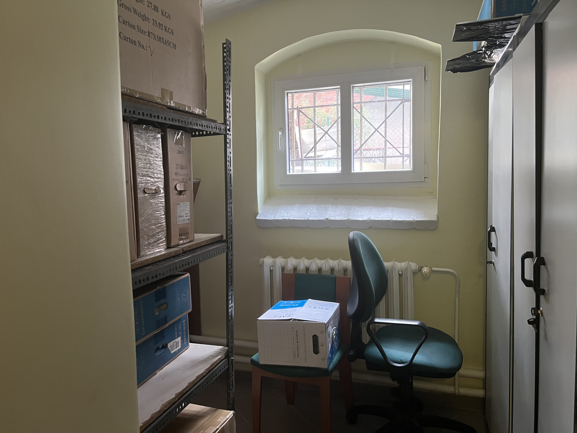 Na podłogach panele oraz płytki. Okna są plastikowe.