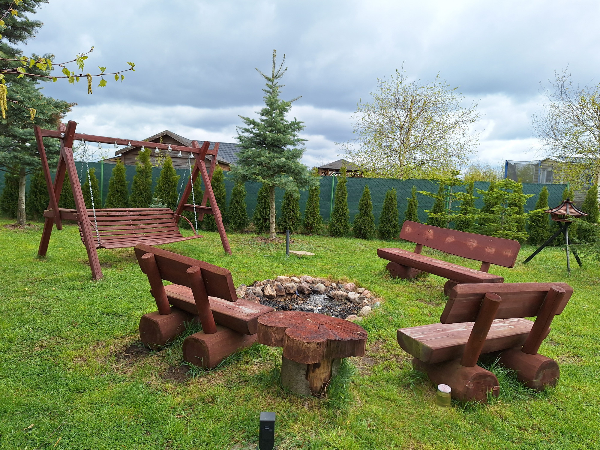 Działka zagospodarowana z boiskiem do siatkówki , miejscem na ognisko , ogrodzona, monitoring, alarm.,sauna , jacuzzi ogrodowe, basen ogrodowy – 17 tys litrów. Zadaszony taras z murowanym grillem.
