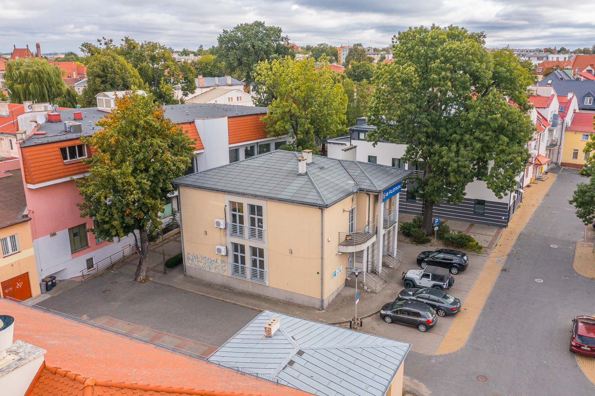 Obiekt posadowiony na nieogrodzonej działce o powierzchni 396m2. Dojazd do działki drogą asfaltową (wjazd od ul. Słowiańskiej). Przed budynkiem znajduje się parking zlokalizowany na działce- aktualnie stanowi on 7 miejsc parkingowych (teren wyłożony kostka brukową).