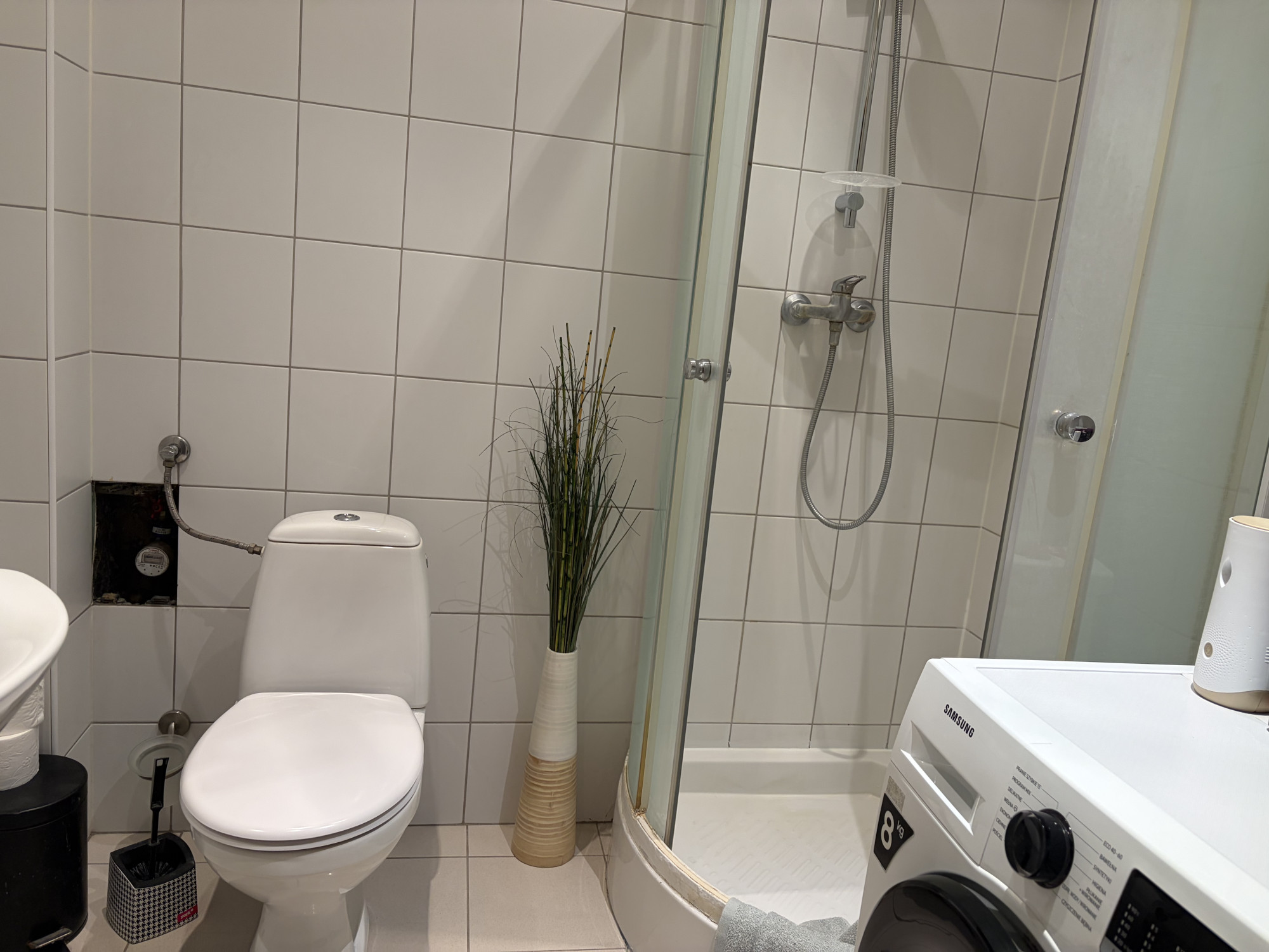 łazienka z kabiną przysznicową. Lokal umeblowany i wyposażony, gotowy do wejścia.
