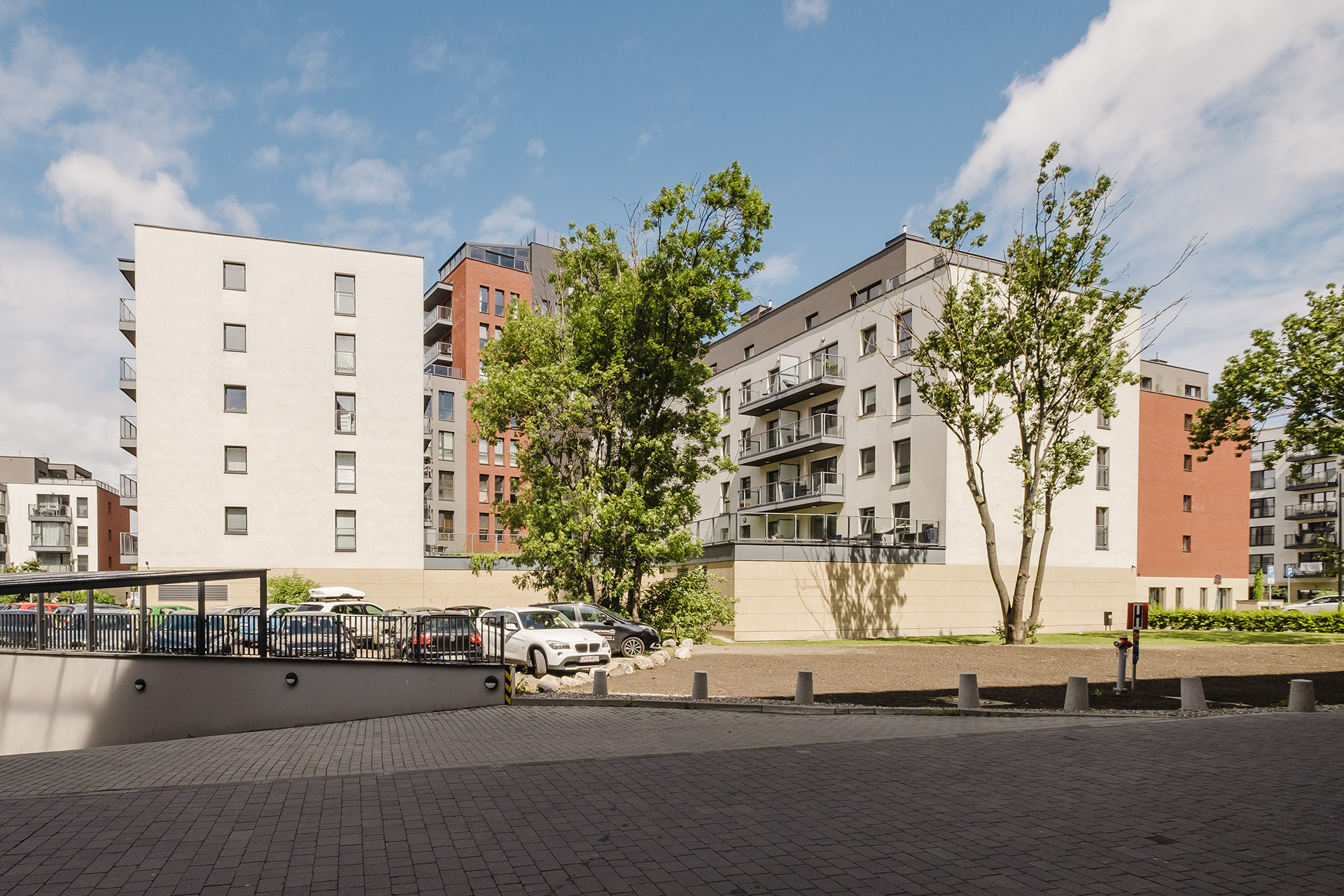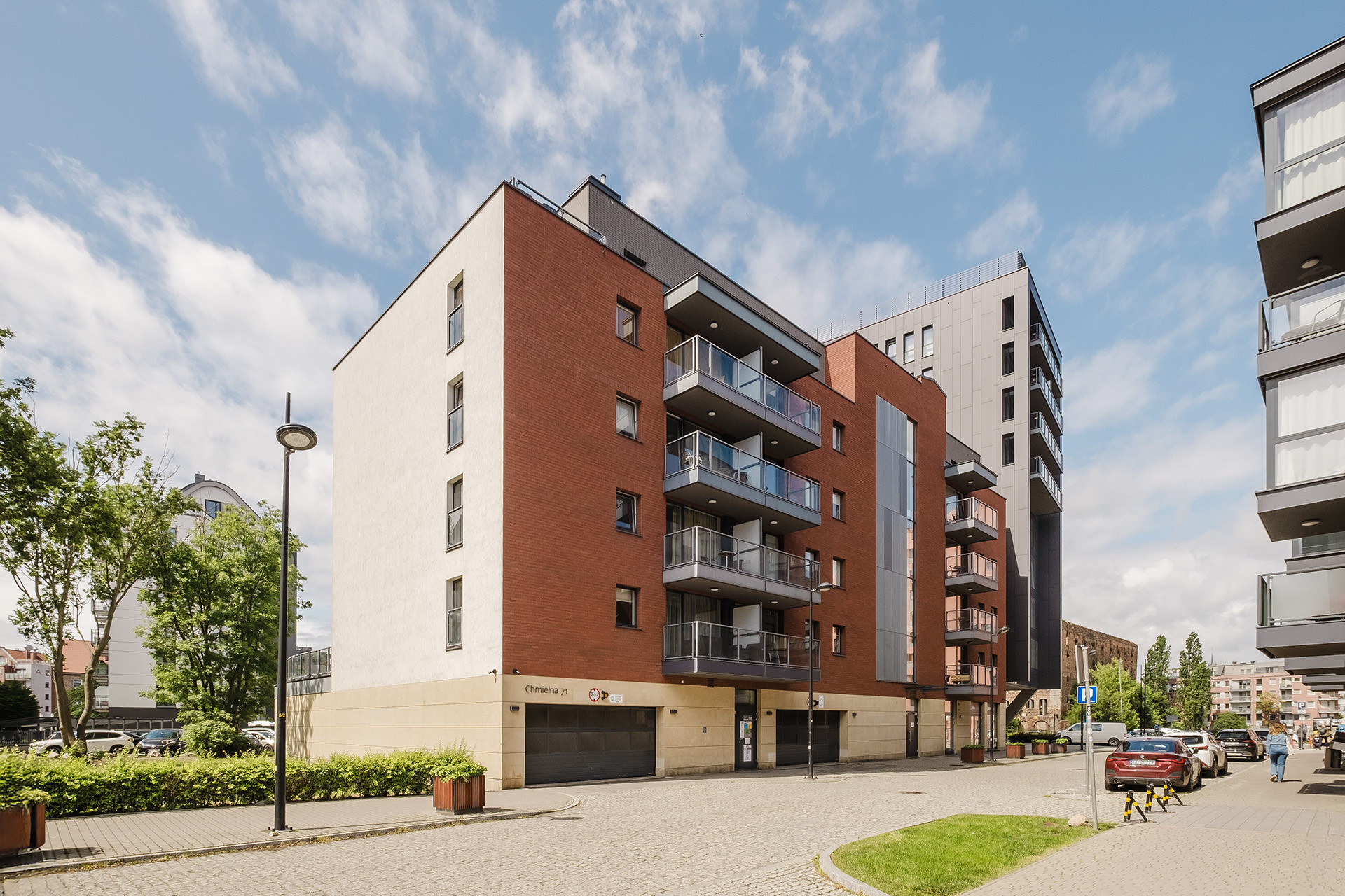 BUDYNEK: Osiedle Chmielna Park to nowoczesny kompleks apartamentowy zrealizowany w 2016 roku. Budynek wyróżnia się przemyślaną architekturą oraz starannie zaprojektowaną estetyką. Stonowana kolorystyka elewacji i wysokiej jakości materiały wykończeniowe tworzą spójną, elegancką całość.
