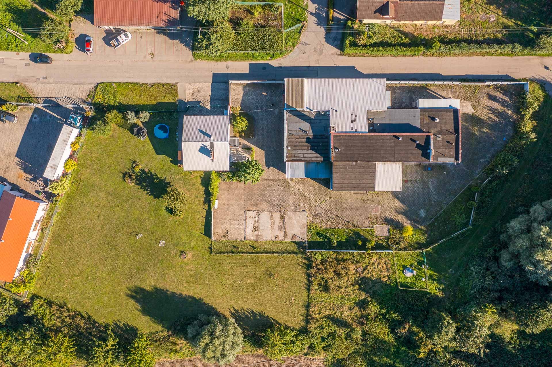 Dodatkowo na działce znajduje się podpiwniczony budynek handlowo-usługowy. Początkowo był to sklep przynależny do zakładu produkcyjnego, aktualnie budynek został zaadaptowany na dom mieszkalny.