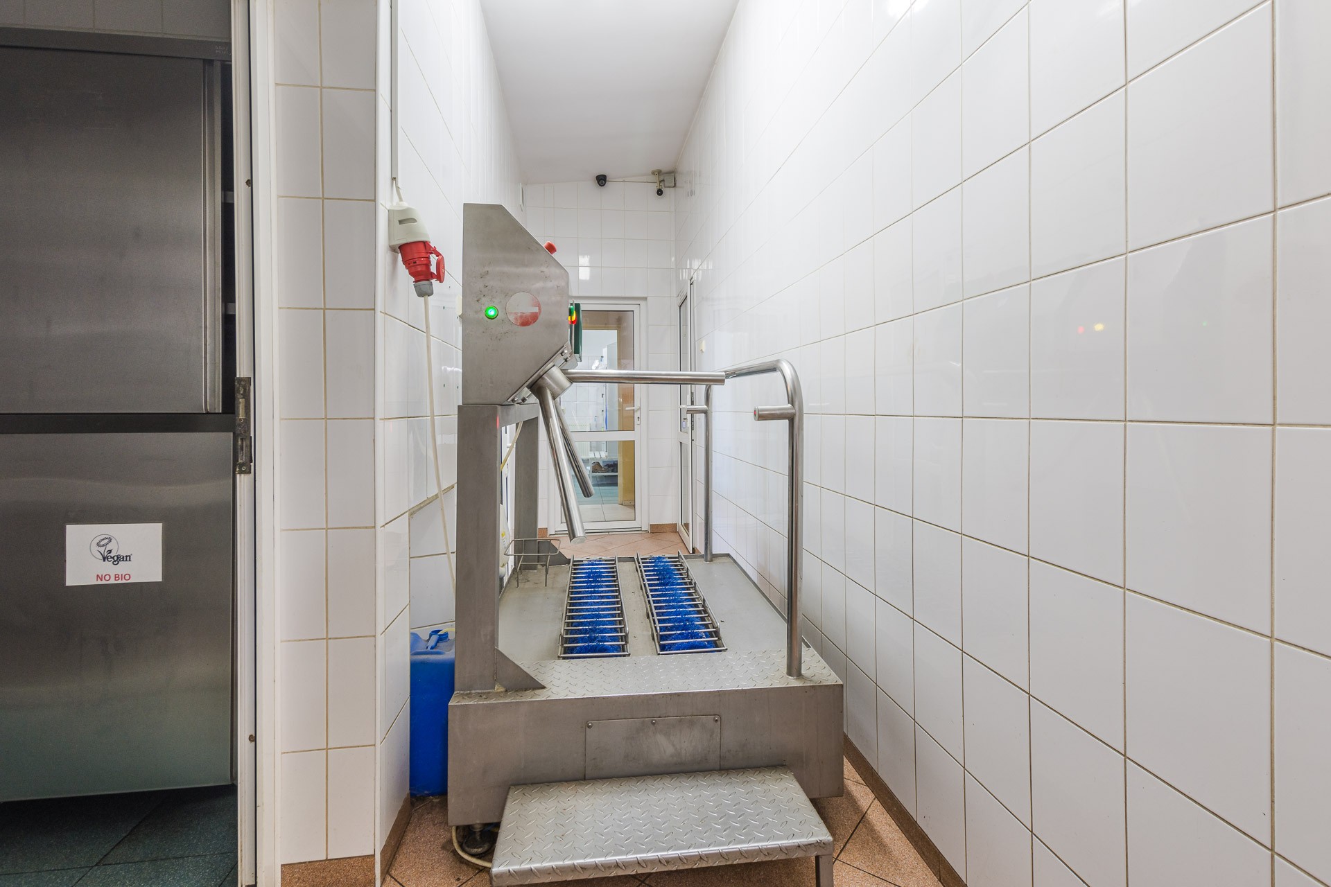 Hala wyposażona m.in. w windę towarową, rampę załadunkową, pomieszczenia magazynowe, techniczne, chłodnie, śluzy sanitarne, myjnie, biura, stołówkę, szatnię oraz toalety.