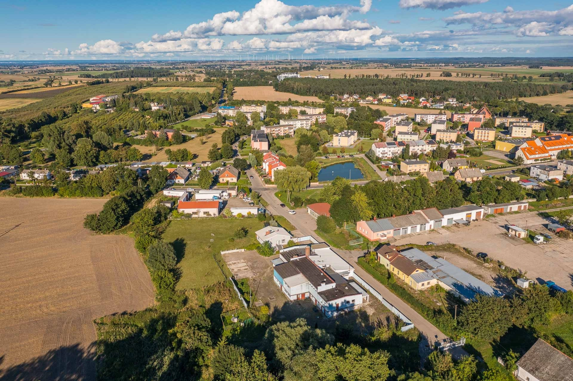 Dodatkowo na działce znajduje się podpiwniczony budynek handlowo-usługowy. Początkowo był to sklep przynależny do zakładu produkcyjnego, aktualnie budynek został zaadaptowany na dom mieszkalny.