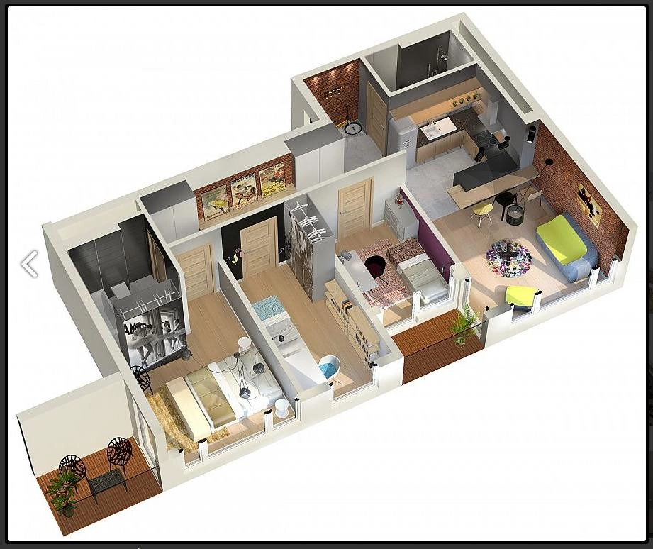 – Sypialnie o powierzchni 8,3 m2, 11,3 m2, 14,0 m2 z wyjściem na balkon
