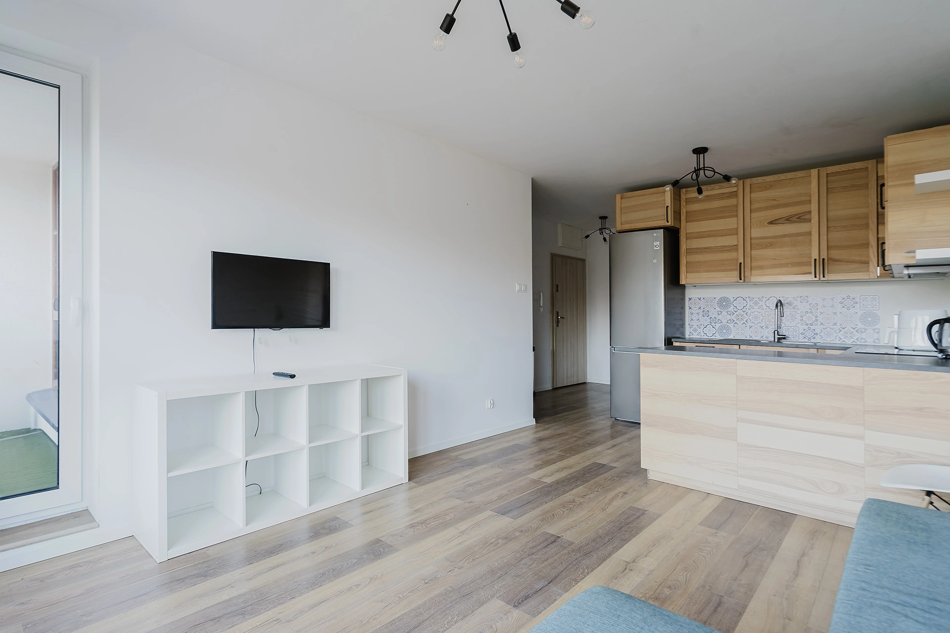 – Pokój dzienny z aneksem kuchennym o powierzchni 21,3 m2 z wyjściem na balkon