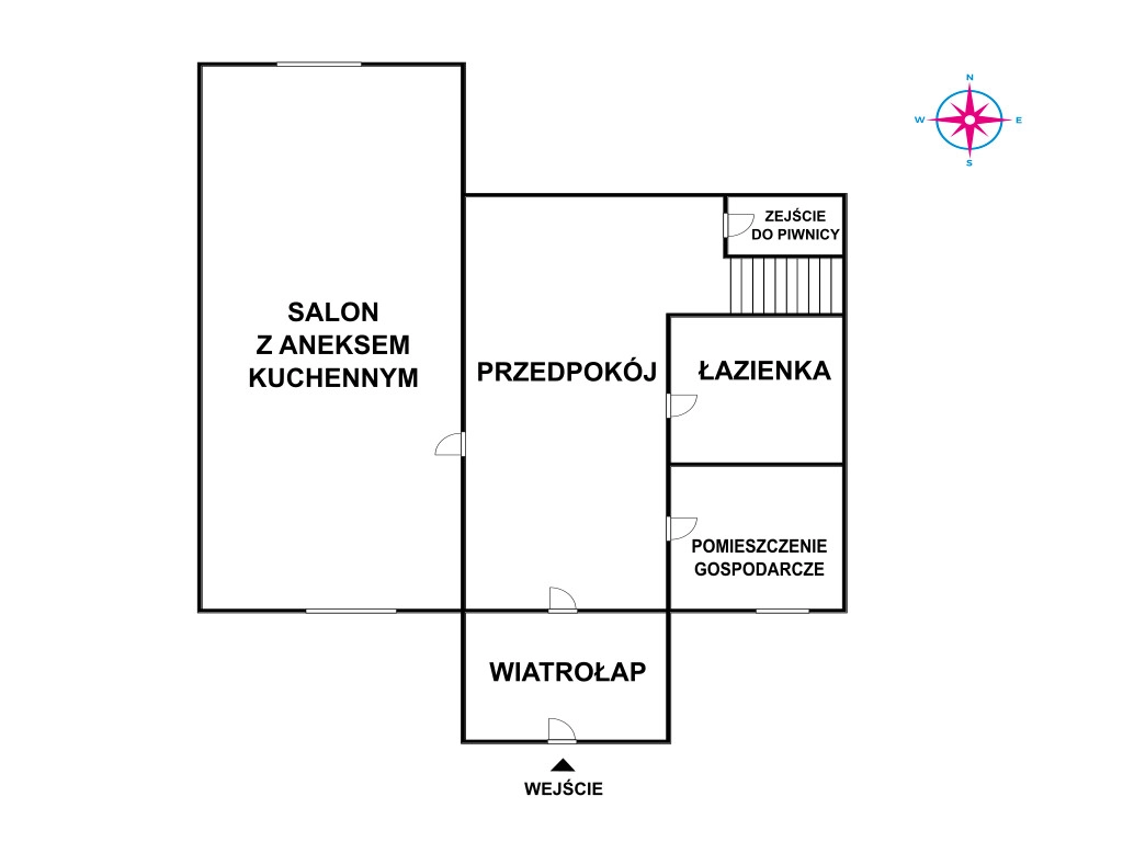 -> Parteru: wiatrołap, pomieszczenie gospodarcze, korytarz, salon z aneksem kuchennym, łazienka z prysznicem i wc