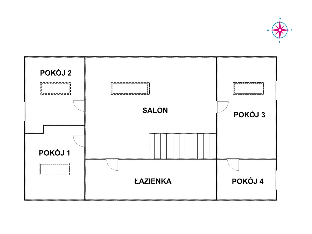 -> Piętro: bardzo duży salon, łazienka z wanną i wc, 2 niezależne pokoje, 1 pokój przejściowy, sypialnia