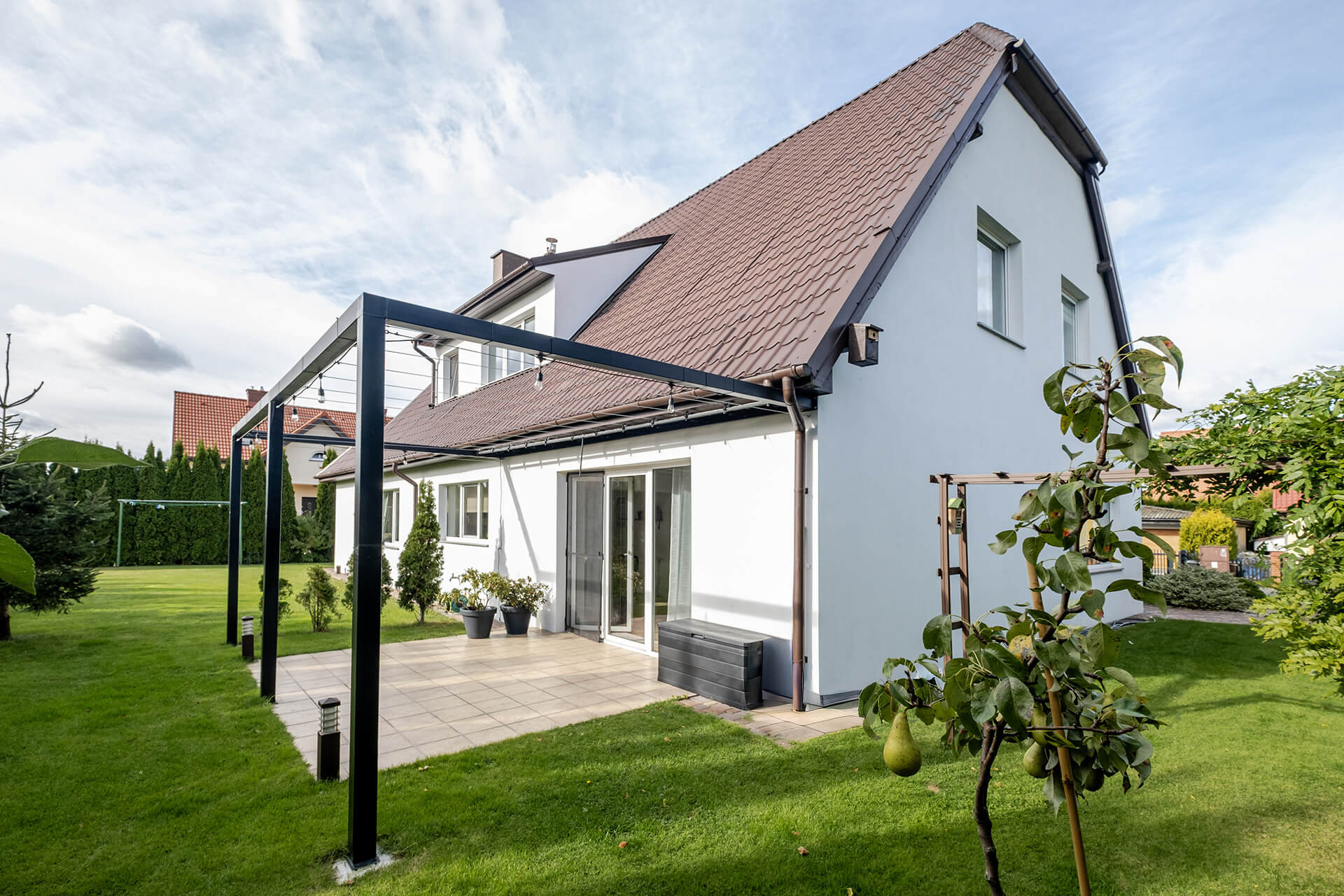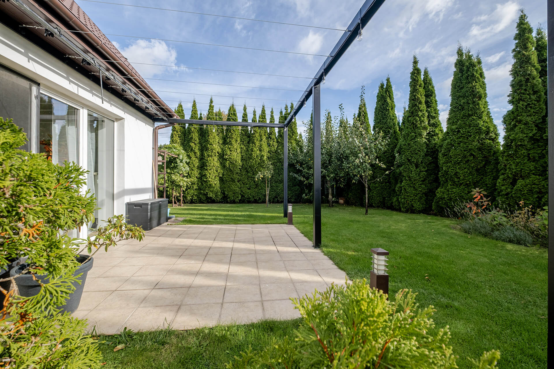 zadbany ogród z tarasem i pergolą – idealne miejsce do relaksu,