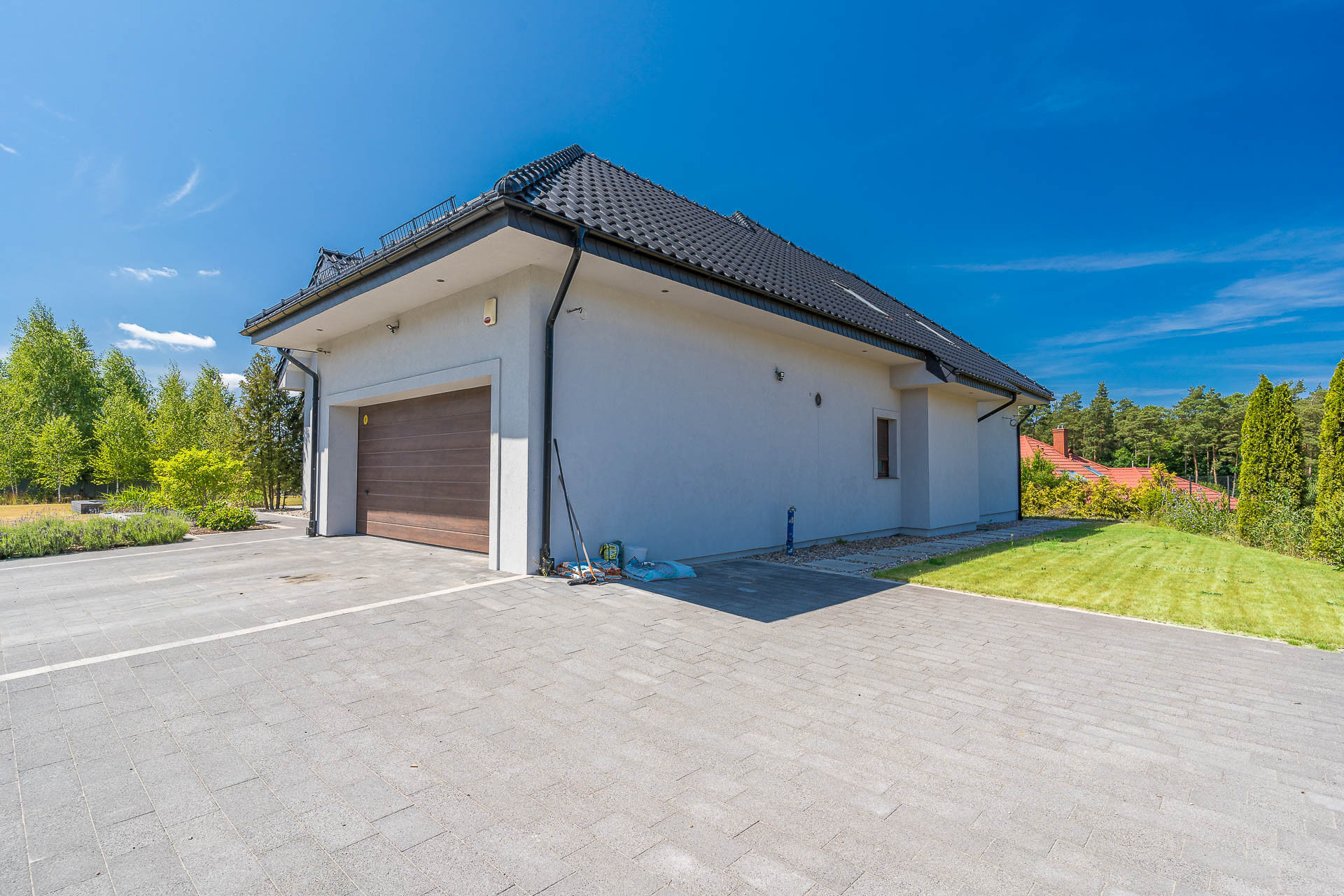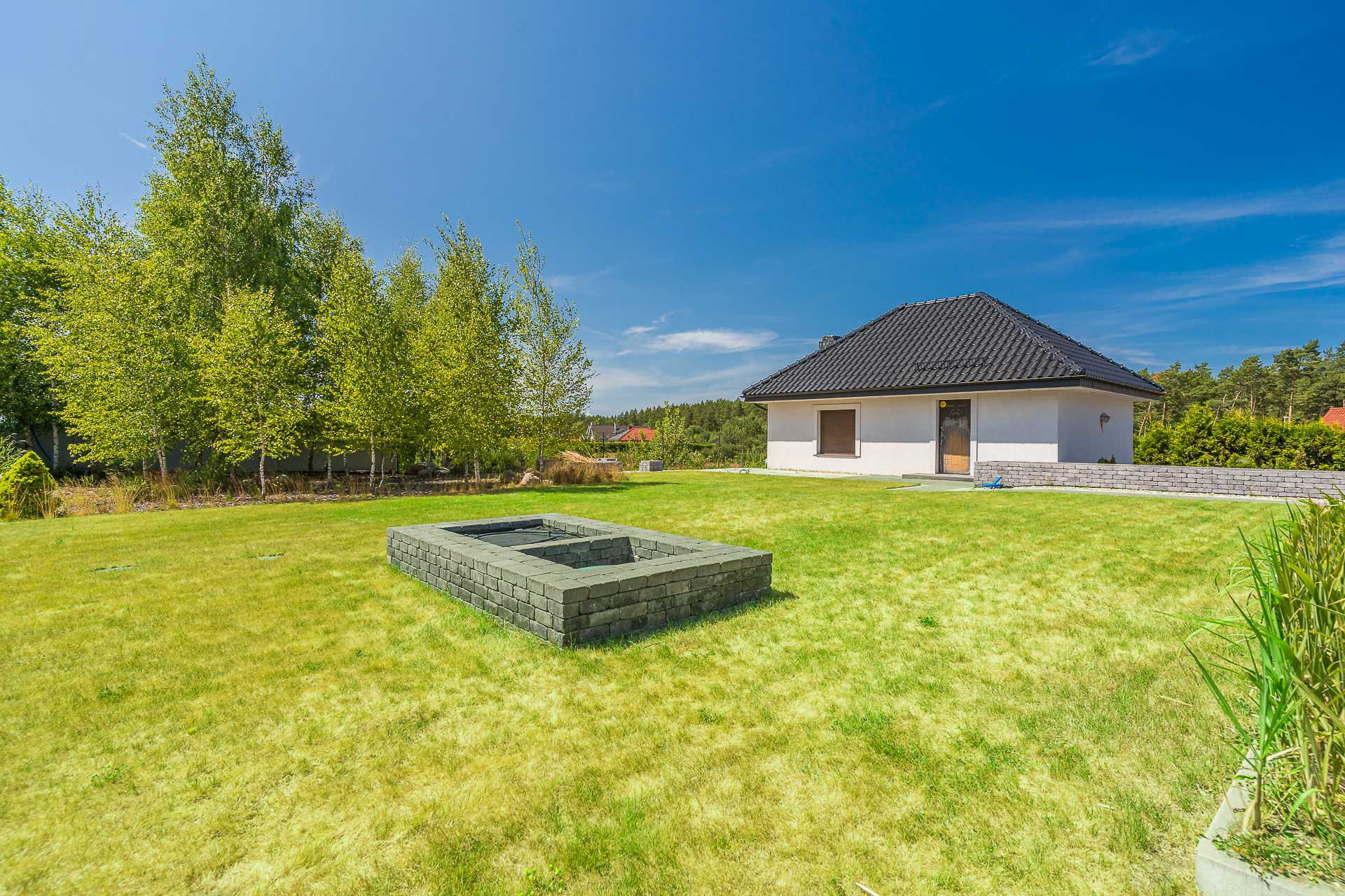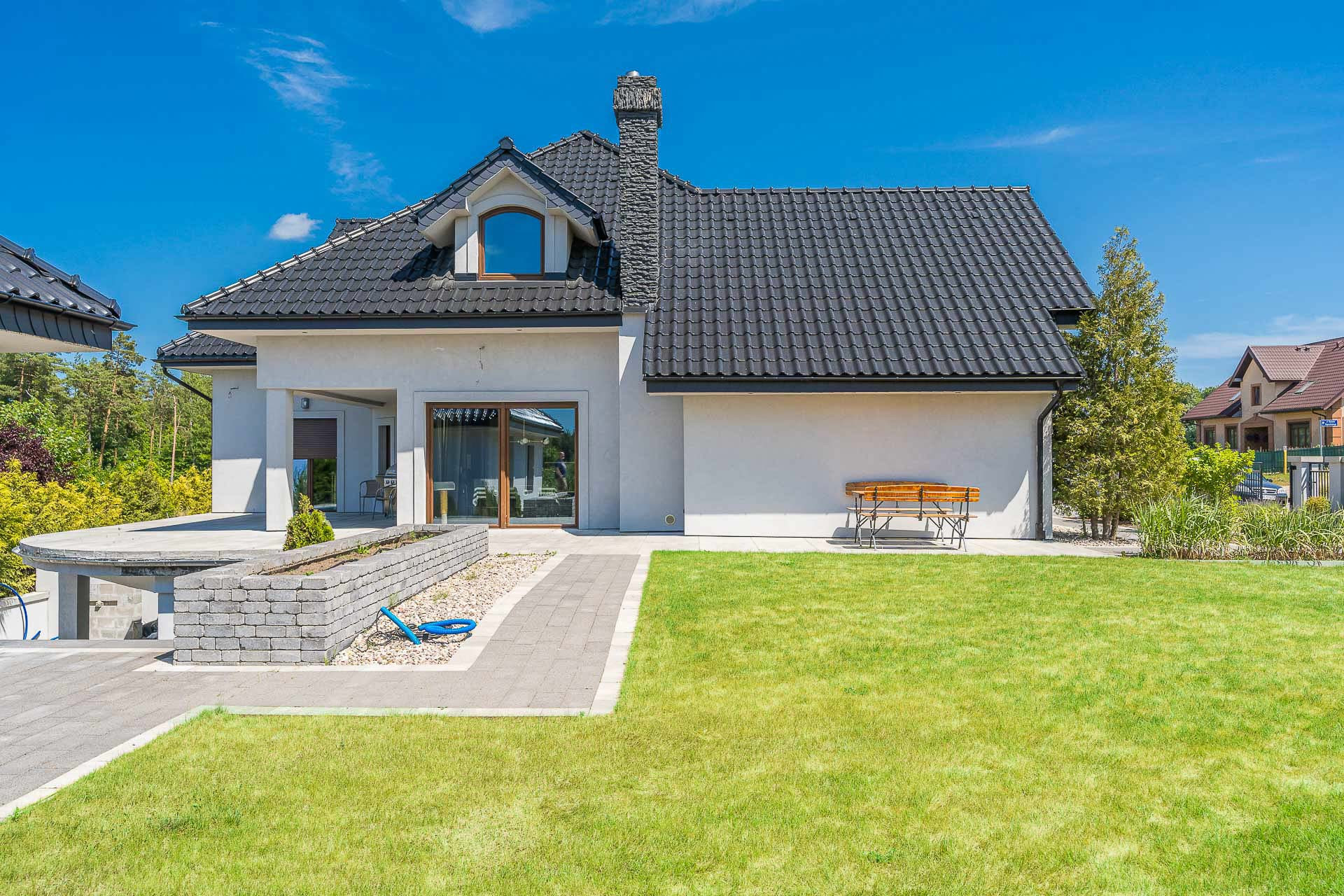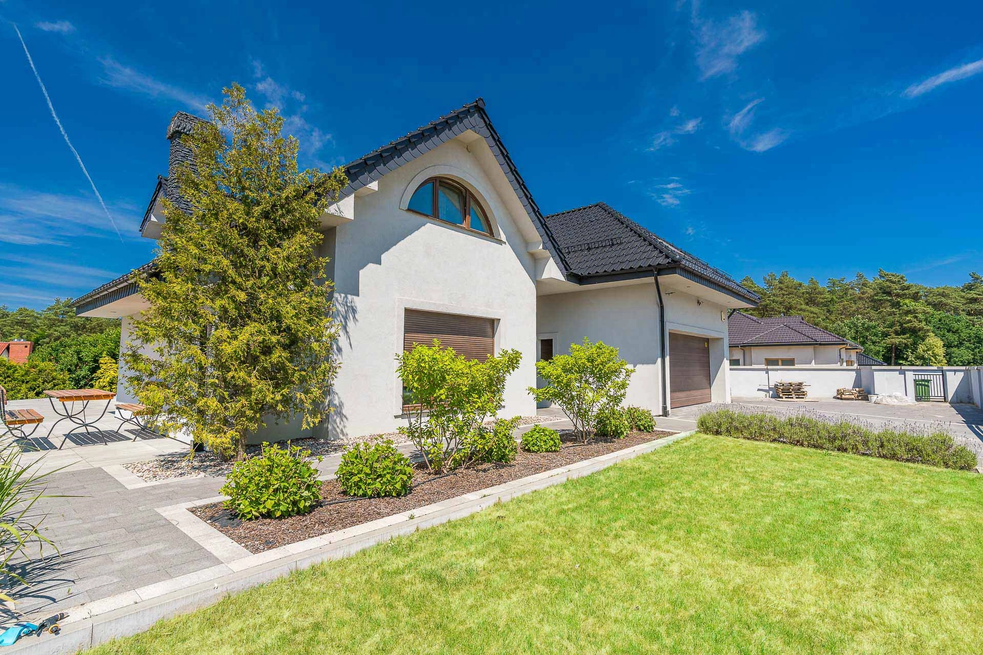 Dom wybudowany i urządzony z dbałością o szczegóły, funkcjonalność. Zamieszkały od września 2013 roku, ogród skończony w 2021 roku. Przeszedł generalny remont w 2021 roku. Cały przód domu, z miejscem na 5 samochodów, wyłożony jest kostką.