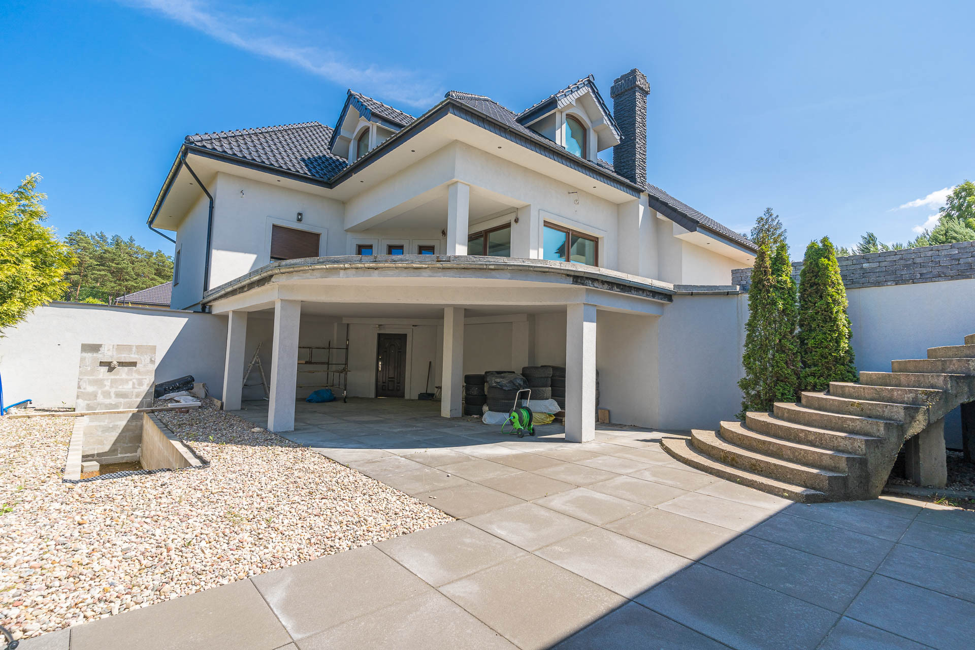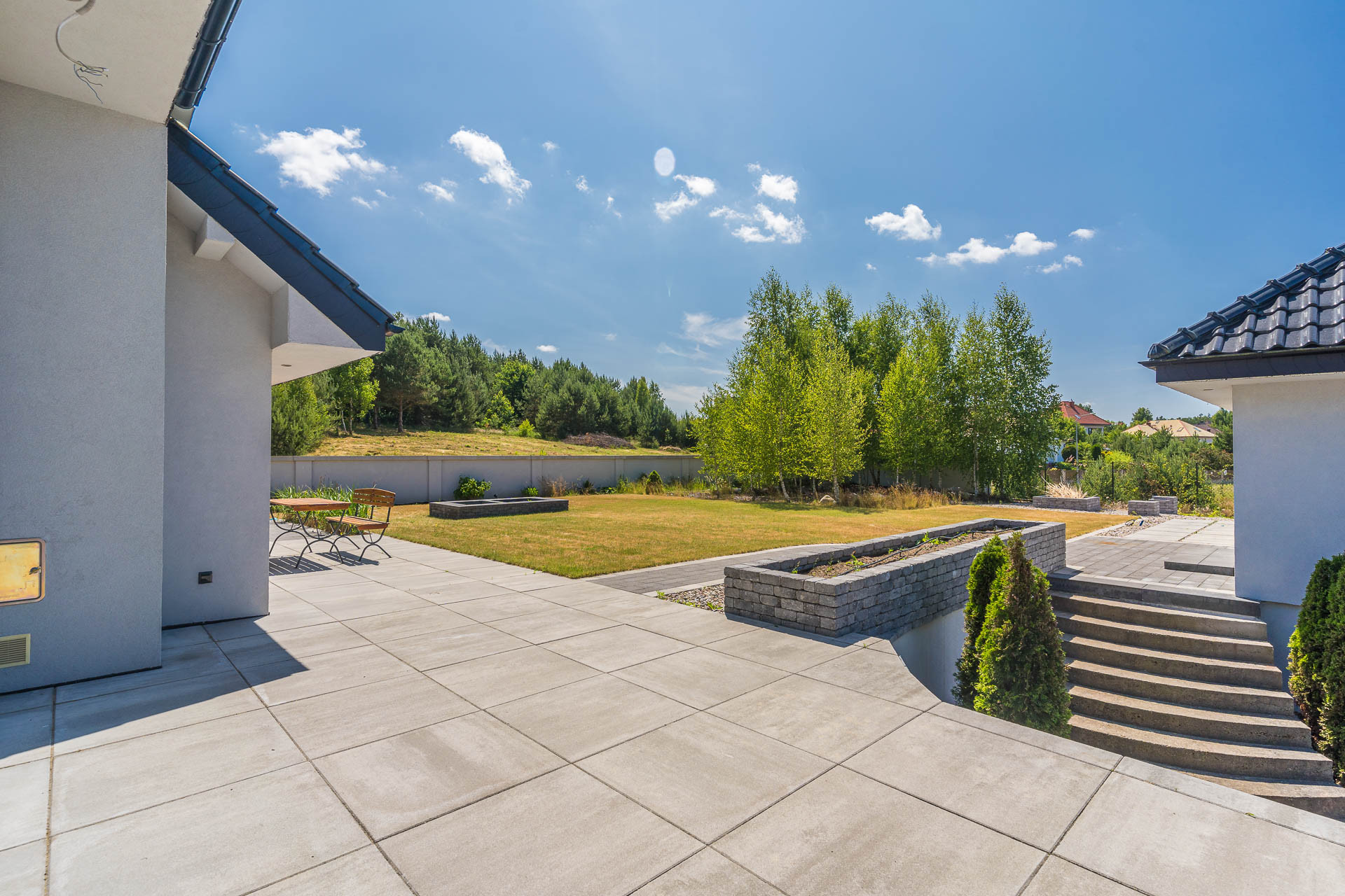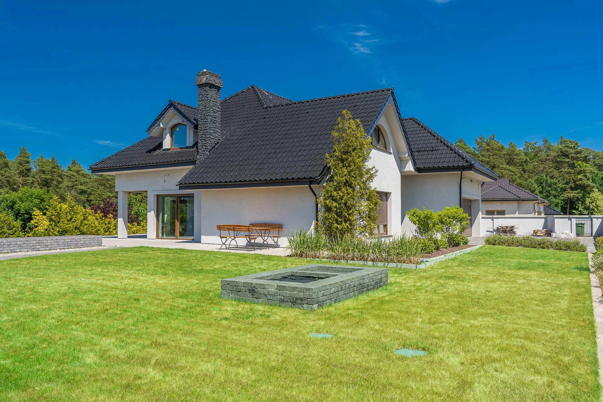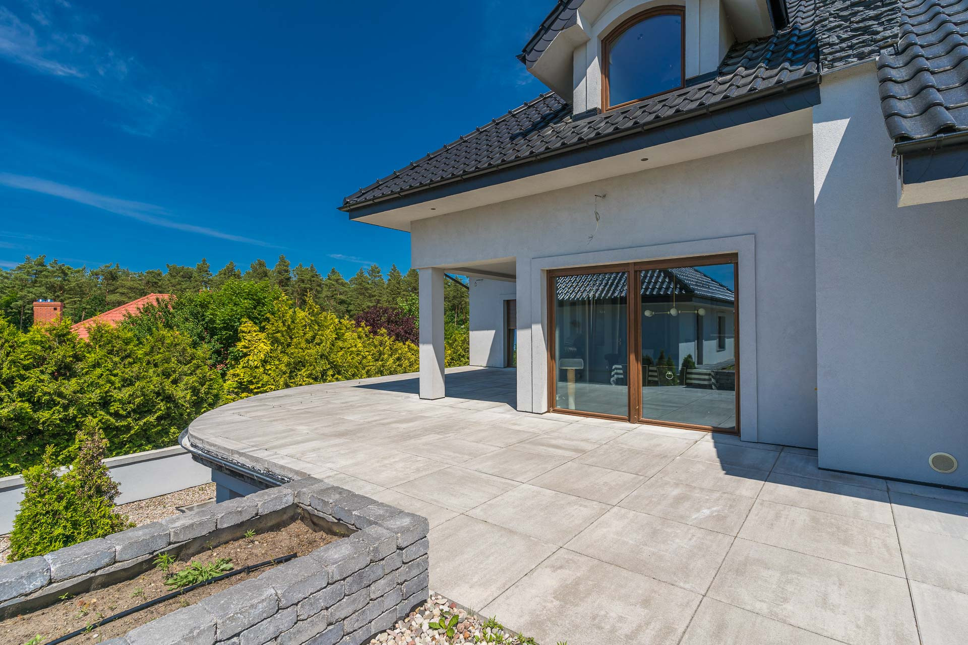 Dom wybudowany i urządzony z dbałością o szczegóły, funkcjonalność. Zamieszkały od września 2013 roku, ogród skończony w 2021 roku. Przeszedł generalny remont w 2021 roku. Cały przód domu, z miejscem na 5 samochodów, wyłożony jest kostką.