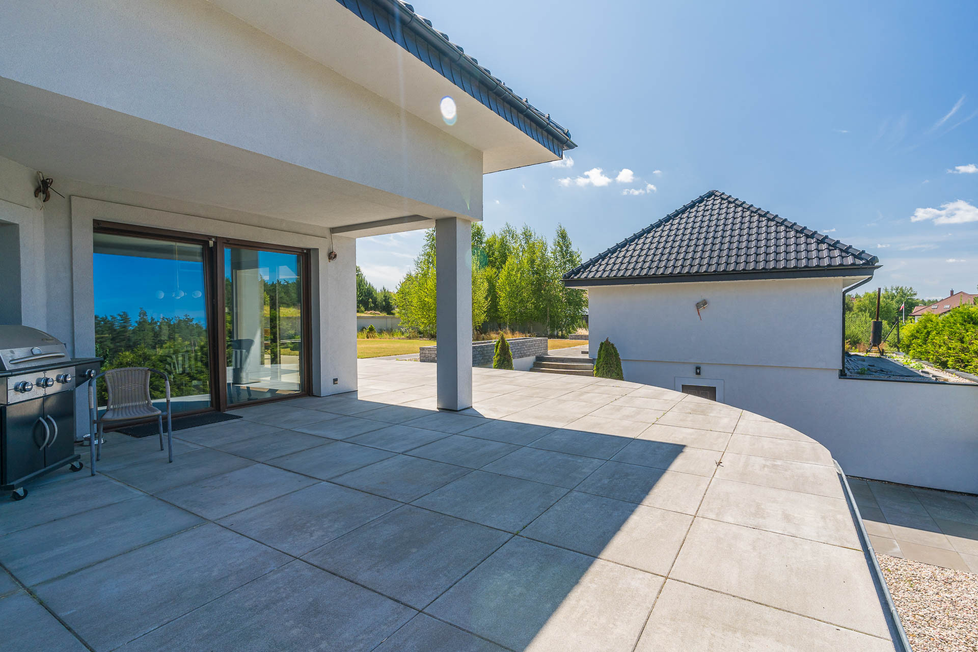 Cały parter oraz mały dom posiada elektryczne rolety zewnętrzne.