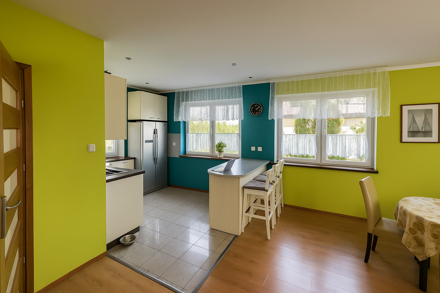 – jasna kuchnia otwarta na salon