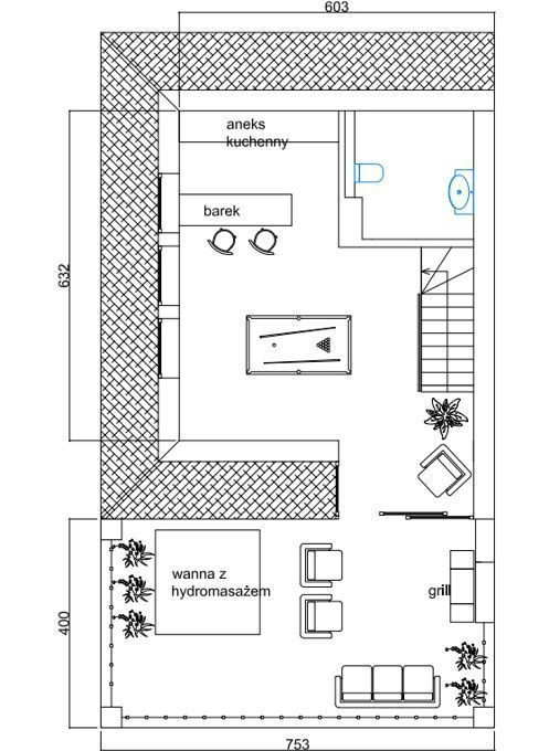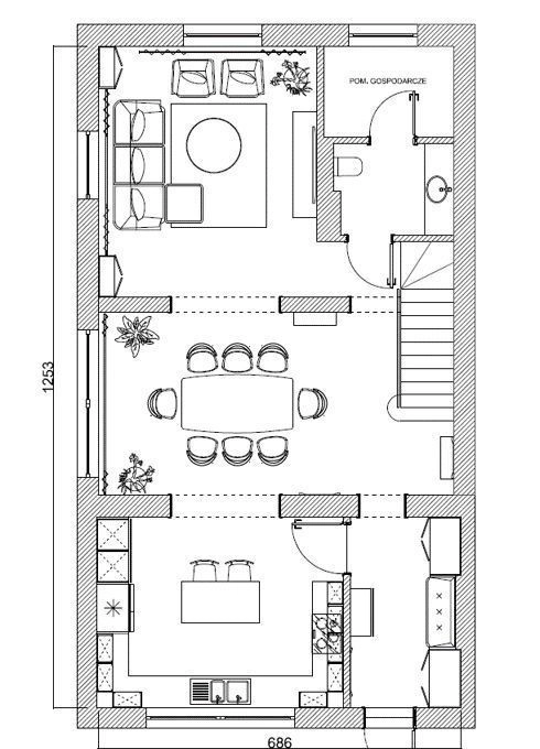 Dom jest w dobrym stanie technicznym, jednak wymaga modernizacji, aby dostosować go do współczesnych technologii i nowoczesnych standardów wykończenia.