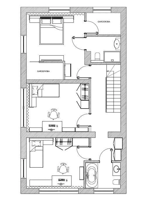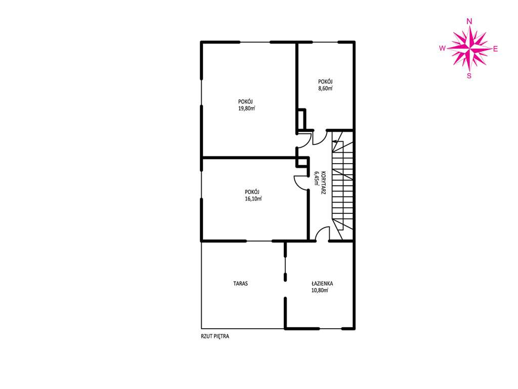 ✅ Piętro (60 m²) – trzy duże sypialnie oraz przestronna łazienka. Możliwość wydzielenia czwartego pokoju poprzez zabudowę tarasu.