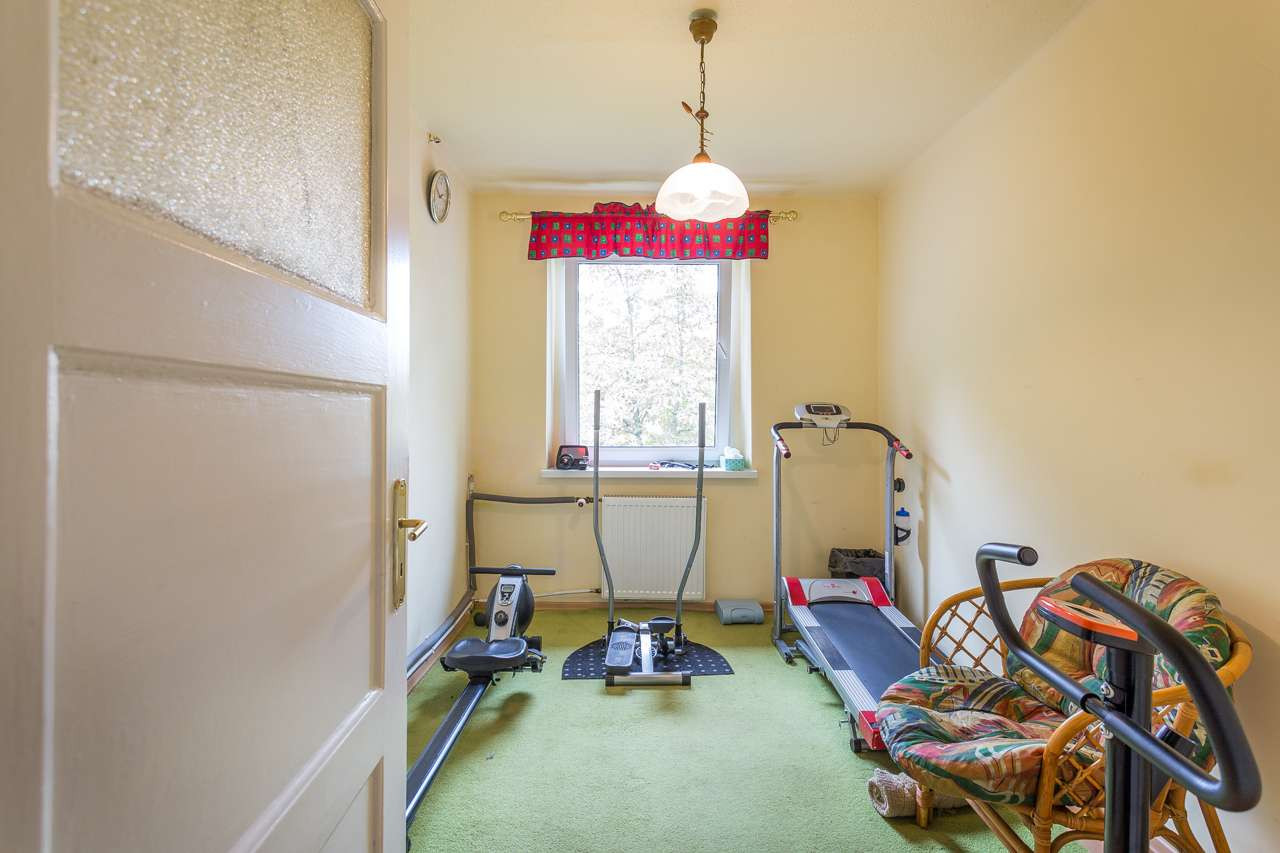 Na posesji znajduje się również przestronny, wolnostojący garaż na trzy stanowiska (50 m²), który może zostać przekształcony na warsztat, gabinet lub dodatkową przestrzeń użytkową.