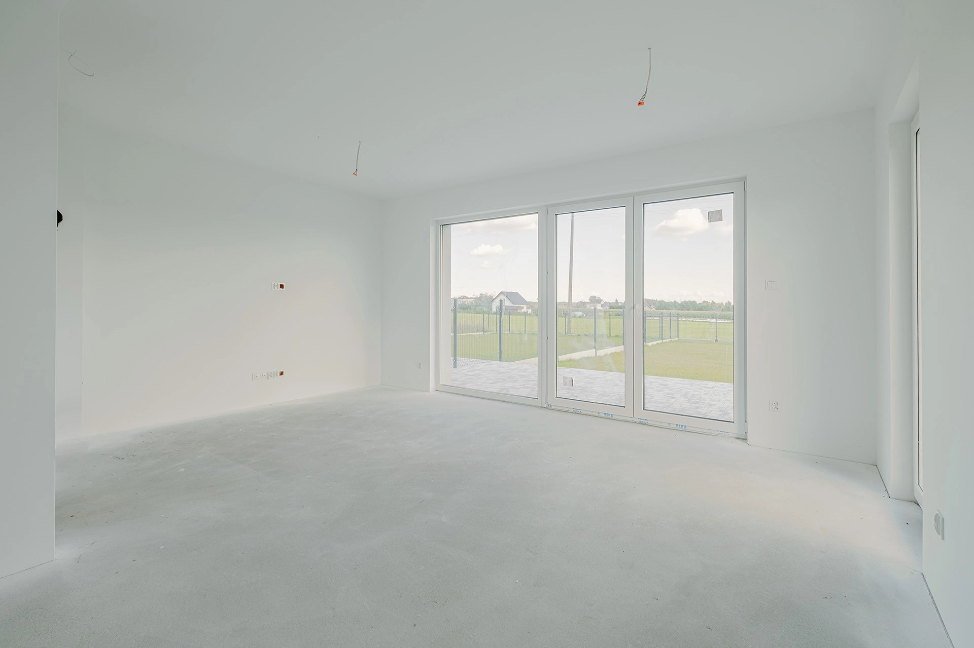 Dom bliźniak w stanie deweloperskim oddany do użytkowania w 2025 roku o całkowitej powierzchni budynku 139,10 m2 oraz użytkowej 104,42 m2