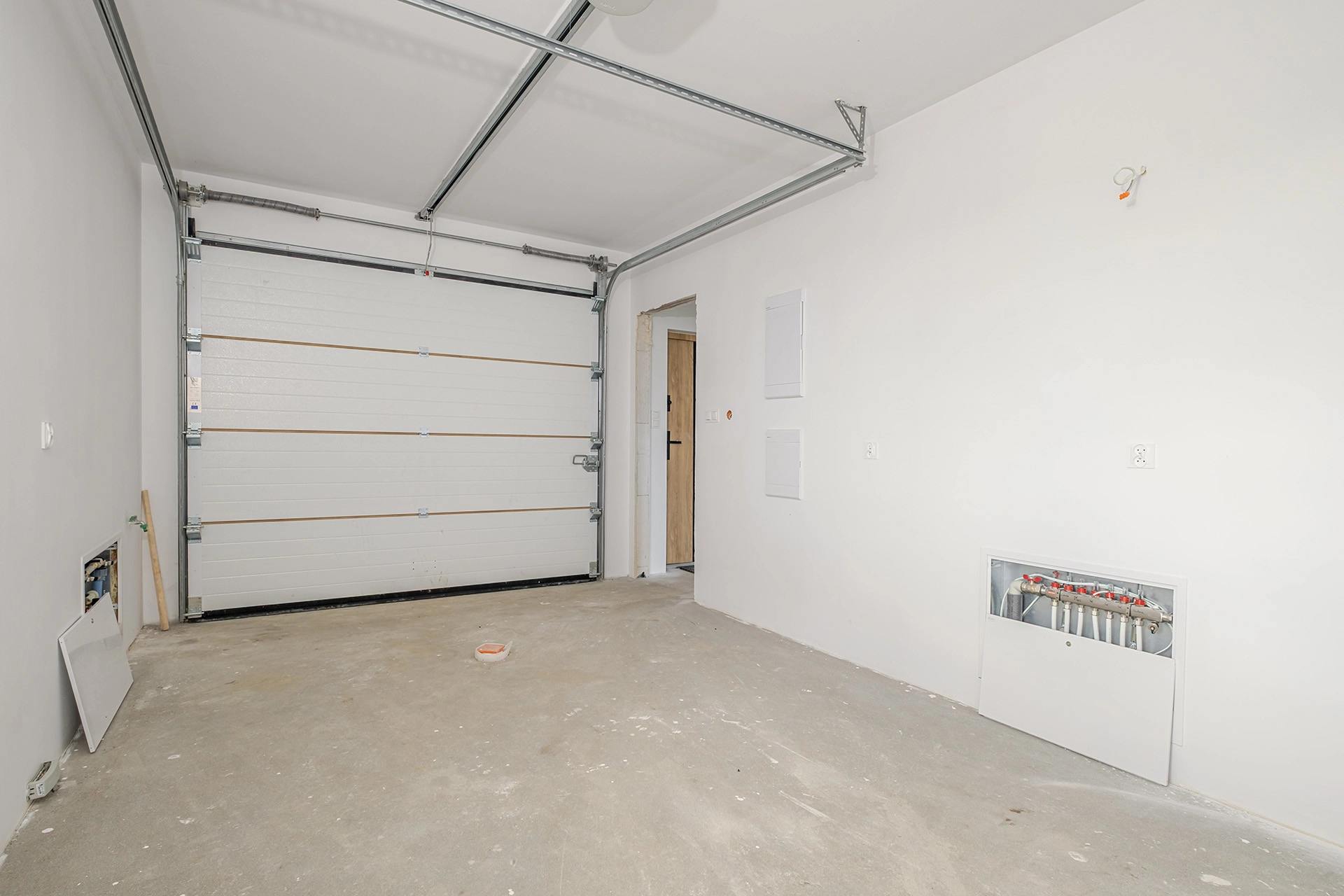 Garaż w bryle budynku i miejsca postojowe przed domem