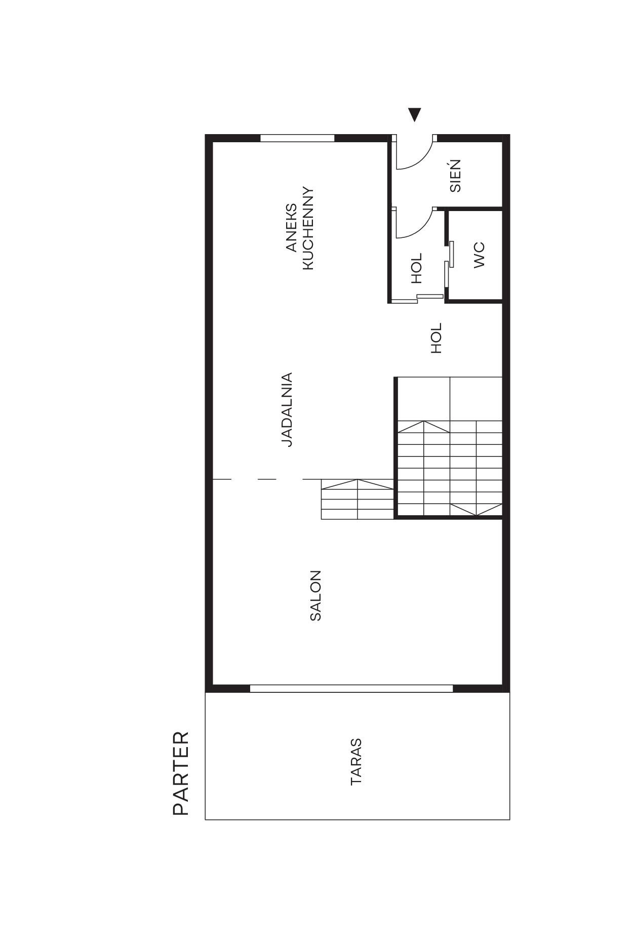 Parter: przestronny salon z wyjściem na taras i do ogrodu, kuchnia, toaleta oraz przedpokój;