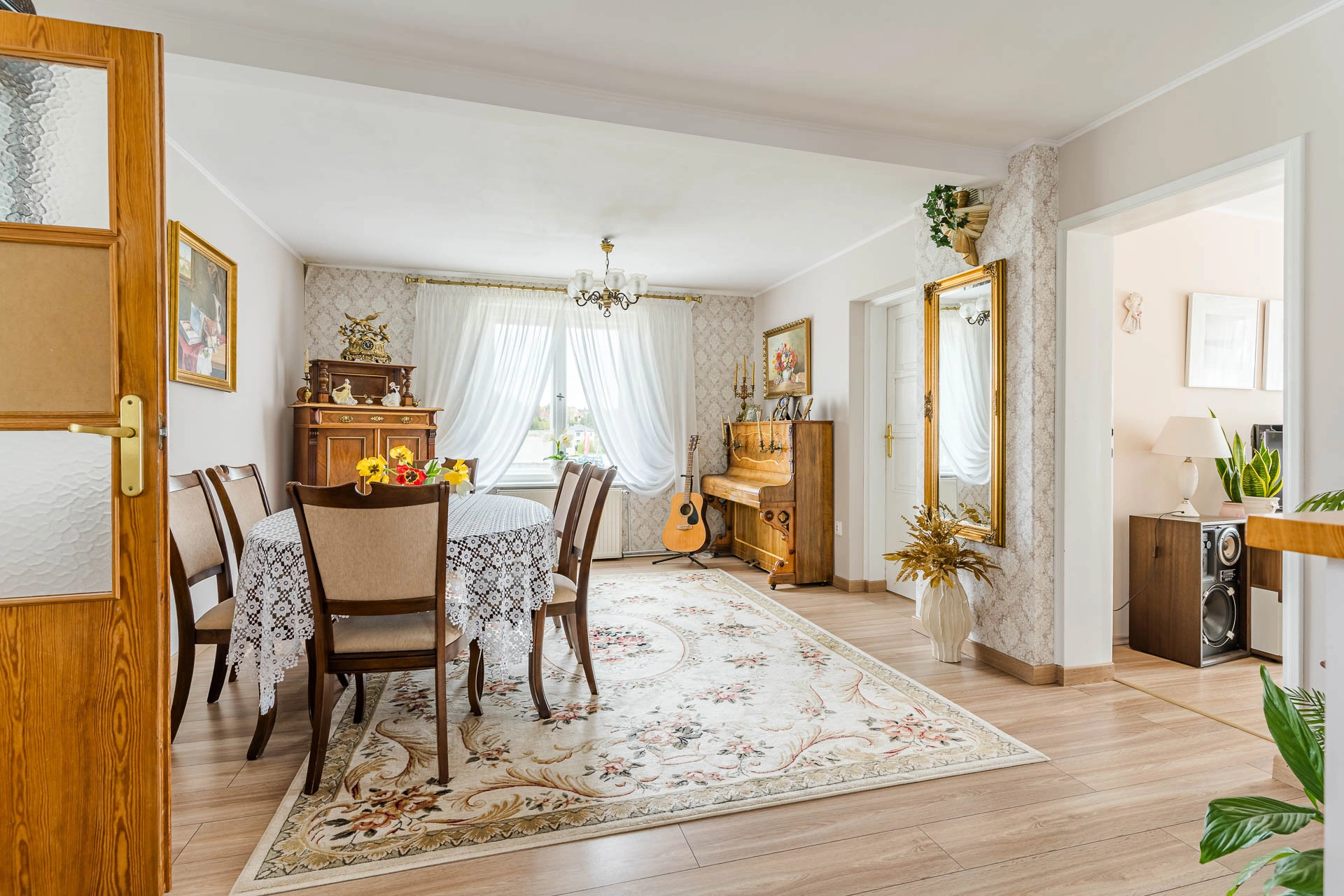 1. Budynek mieszkalny dwupiętrowy (typu kostka PRL), podpiwniczony, dwulokalowy (parter i piętro z osobnymi wejściami) o powierzchni 170m2., wybudowany w latach 50.