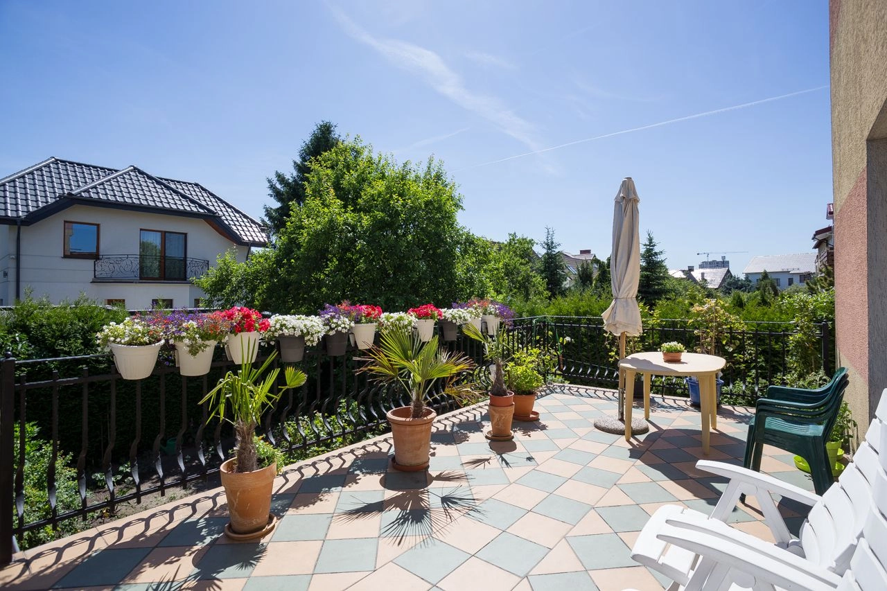 Z części głównej taras z niewielkim, kameralnym ogrodem od strony południowej. Istnieje możliwość zagospodarowania części dachu na kolejny taras.