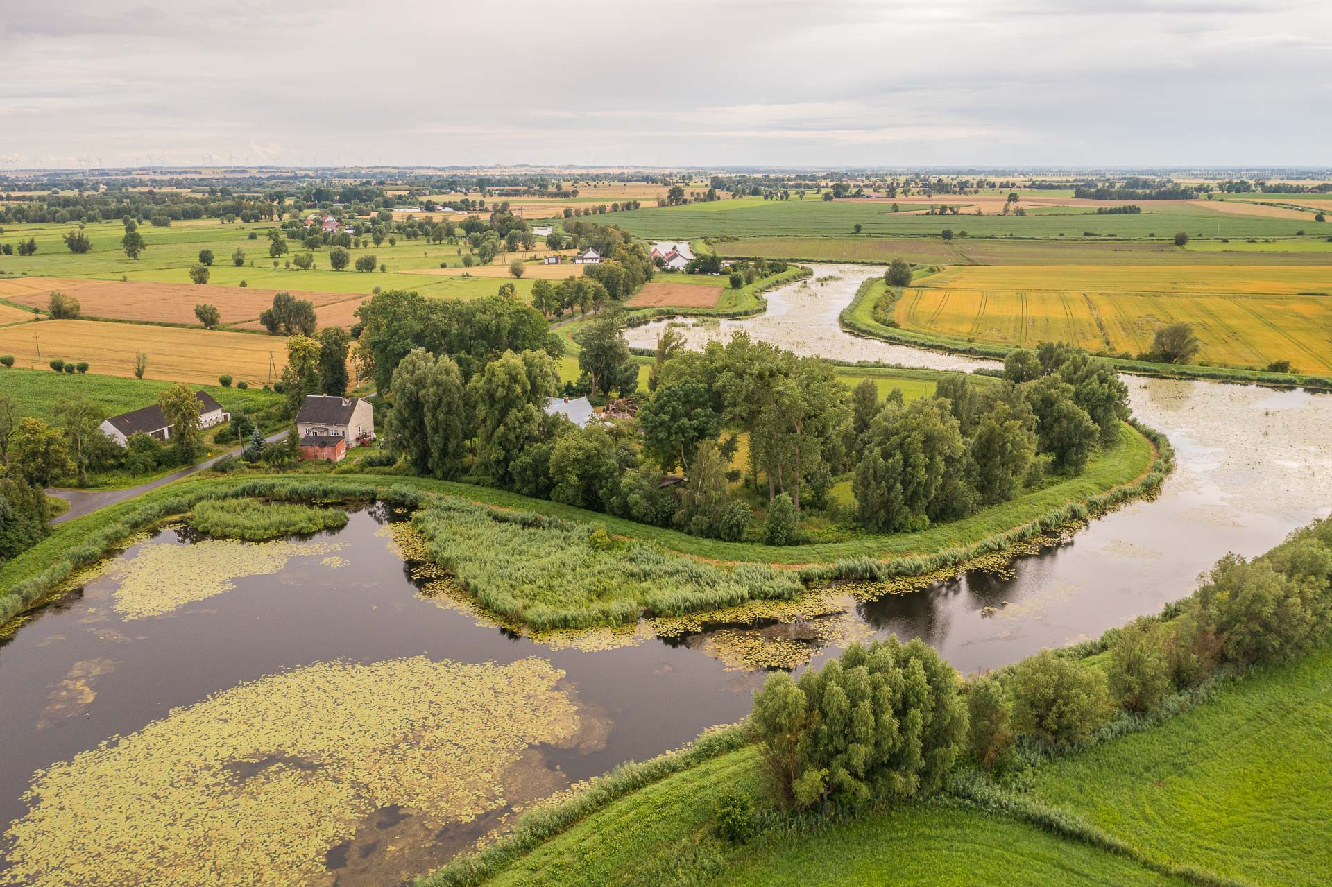 Wzdłuż działki ciągnie się ok. 400m linia brzegowa rzeki Tyny.