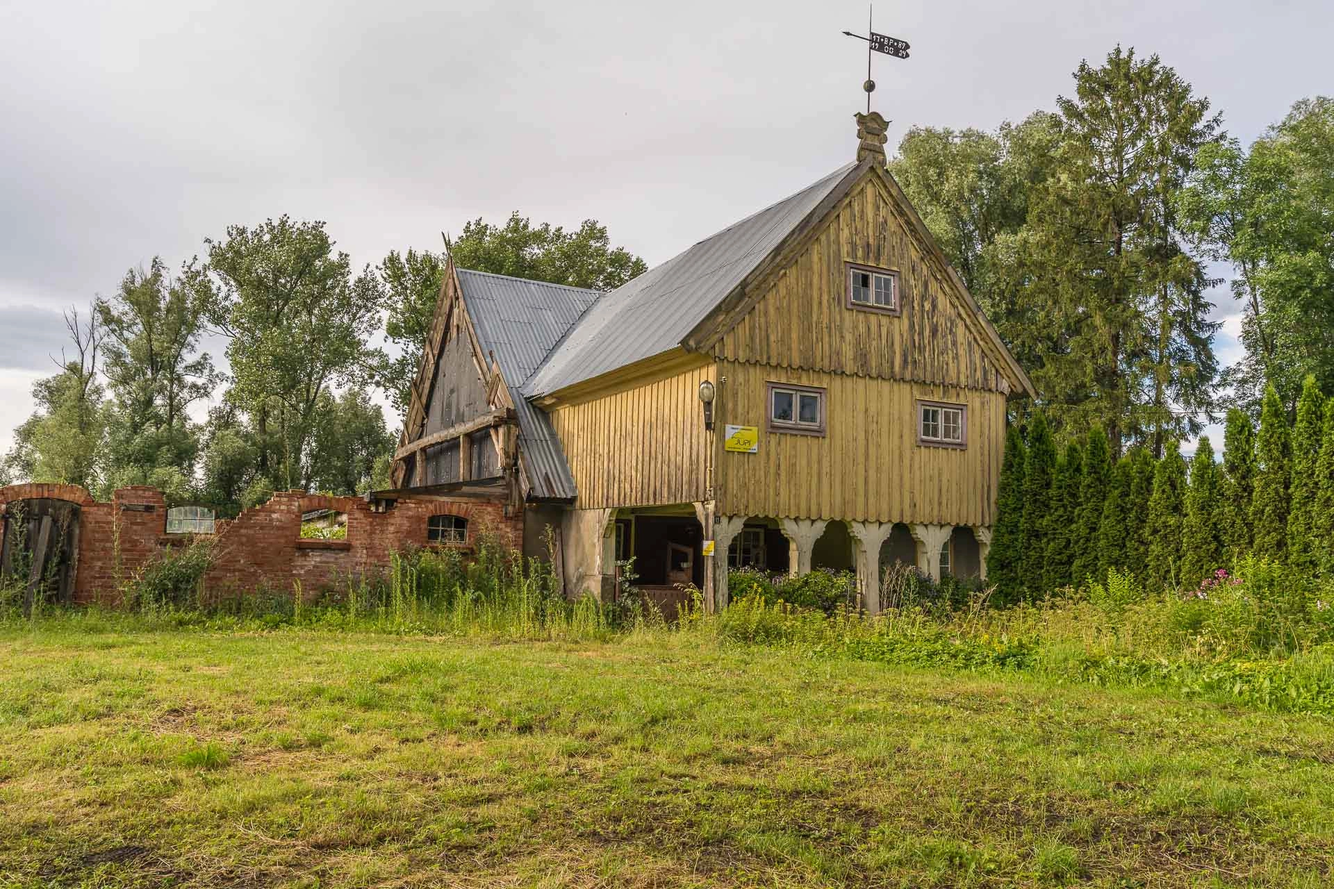 Zabytkowy budynek podcieniowy z 1879 roku, wymagający przeprowadzenia remontu.
