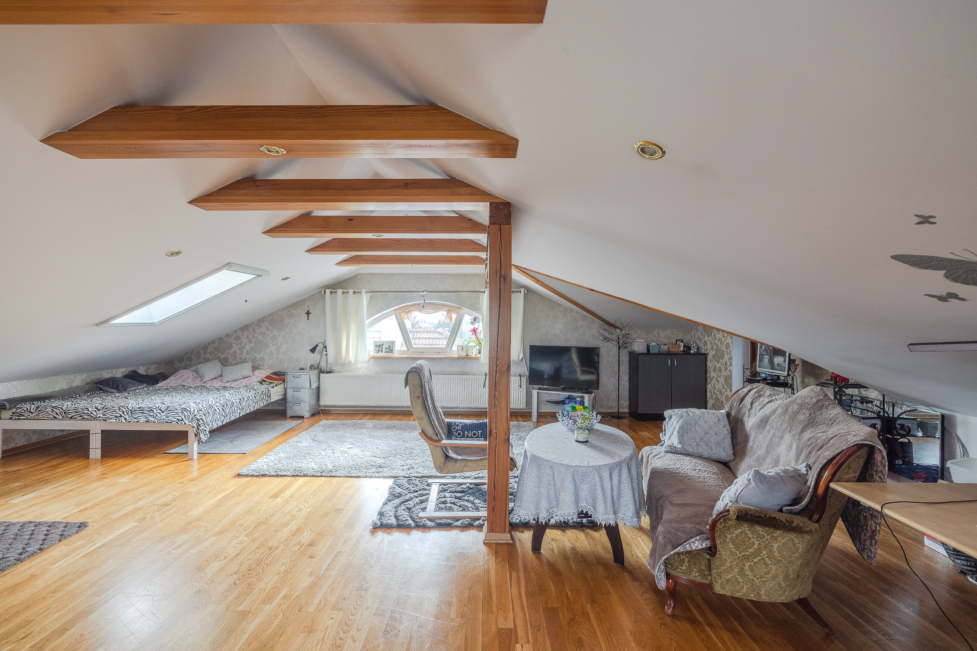 Kolejne piętro budynku zajmuje 60 metrowe mieszkanie z łazienką oraz aneksem kuchennym.