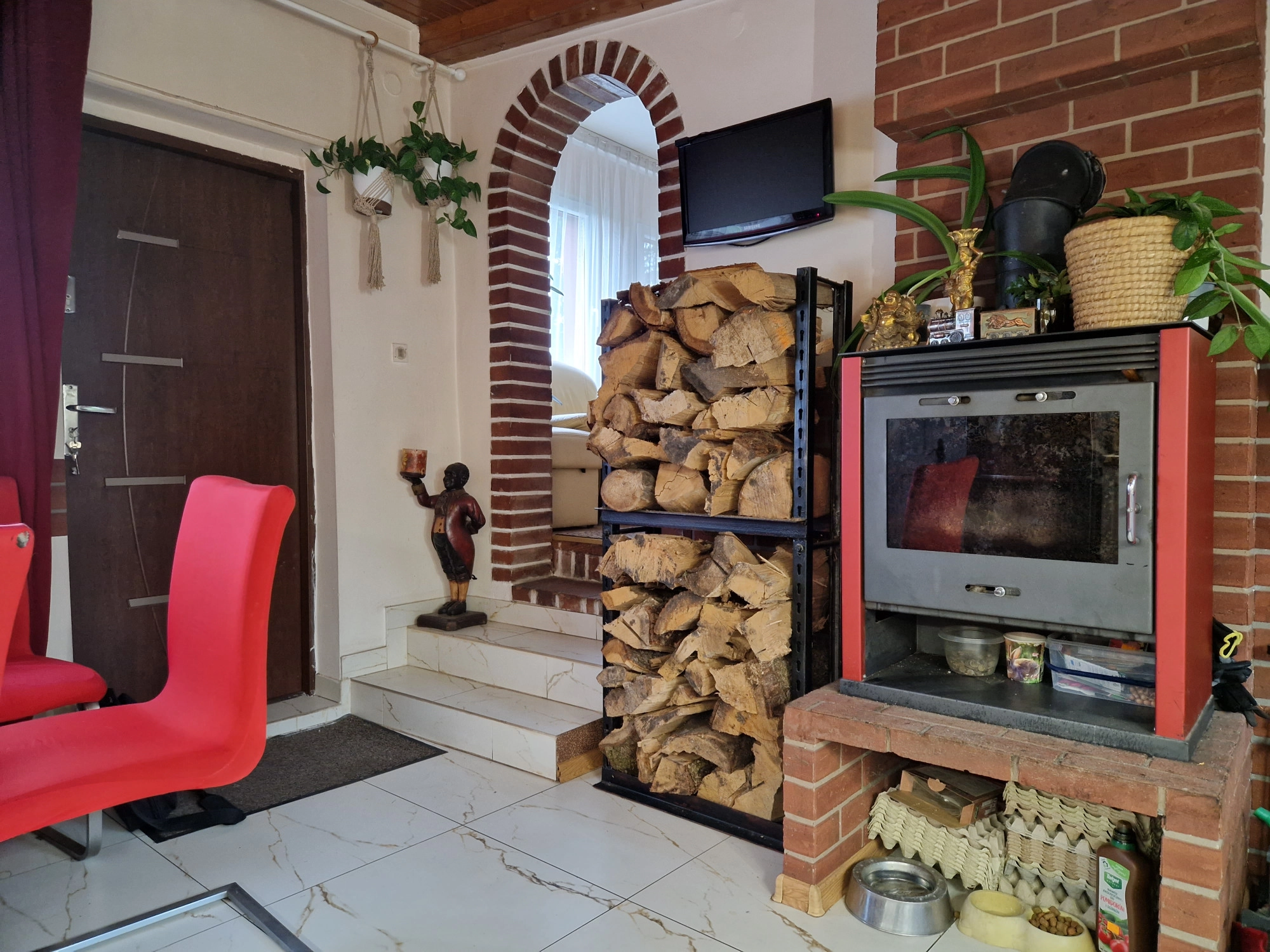 – kuchnia z oknem, kominkiem i wyjściem na taras i ogród.