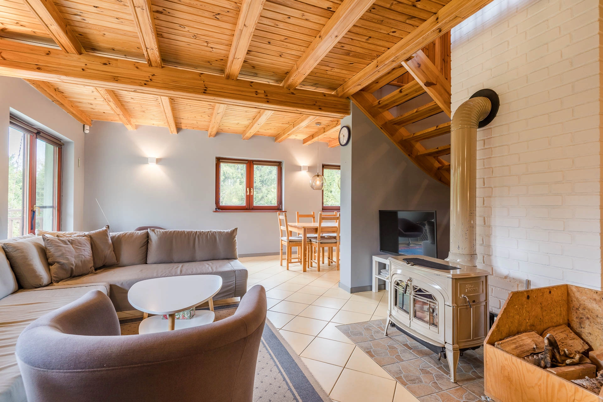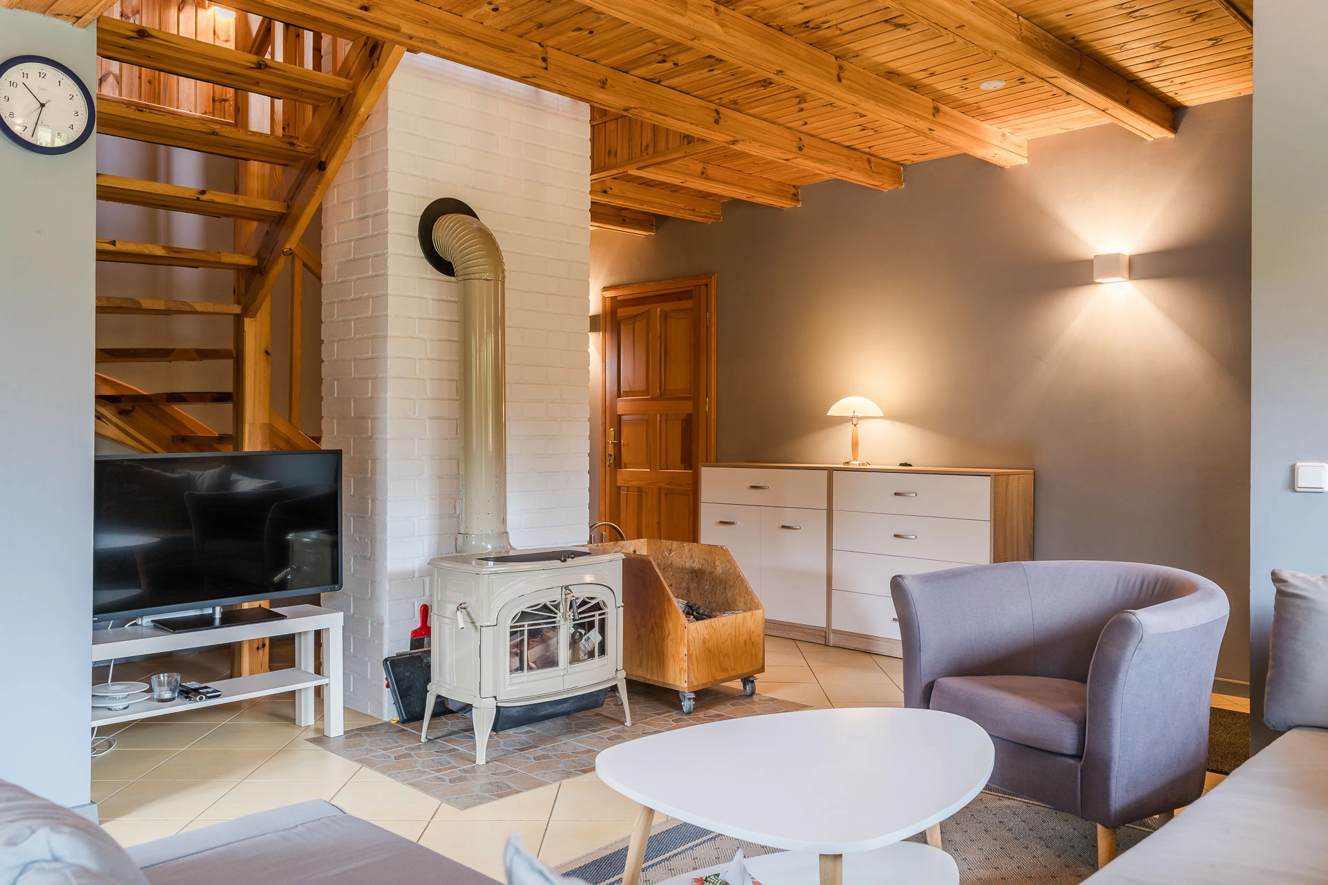 Ogrzewanie : kominek – koza, wystarczajaca na utrzymanie ciepła w całym domu.