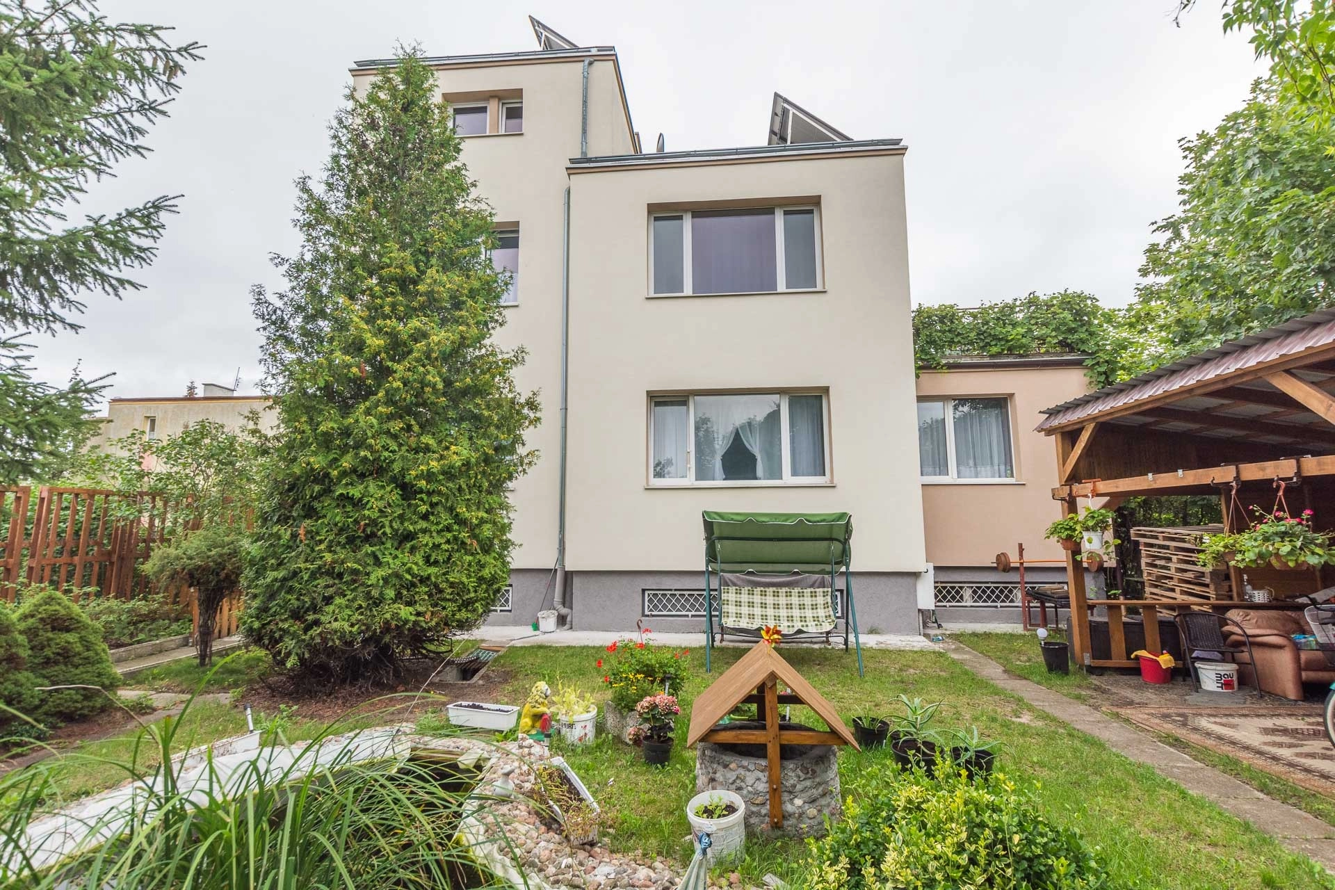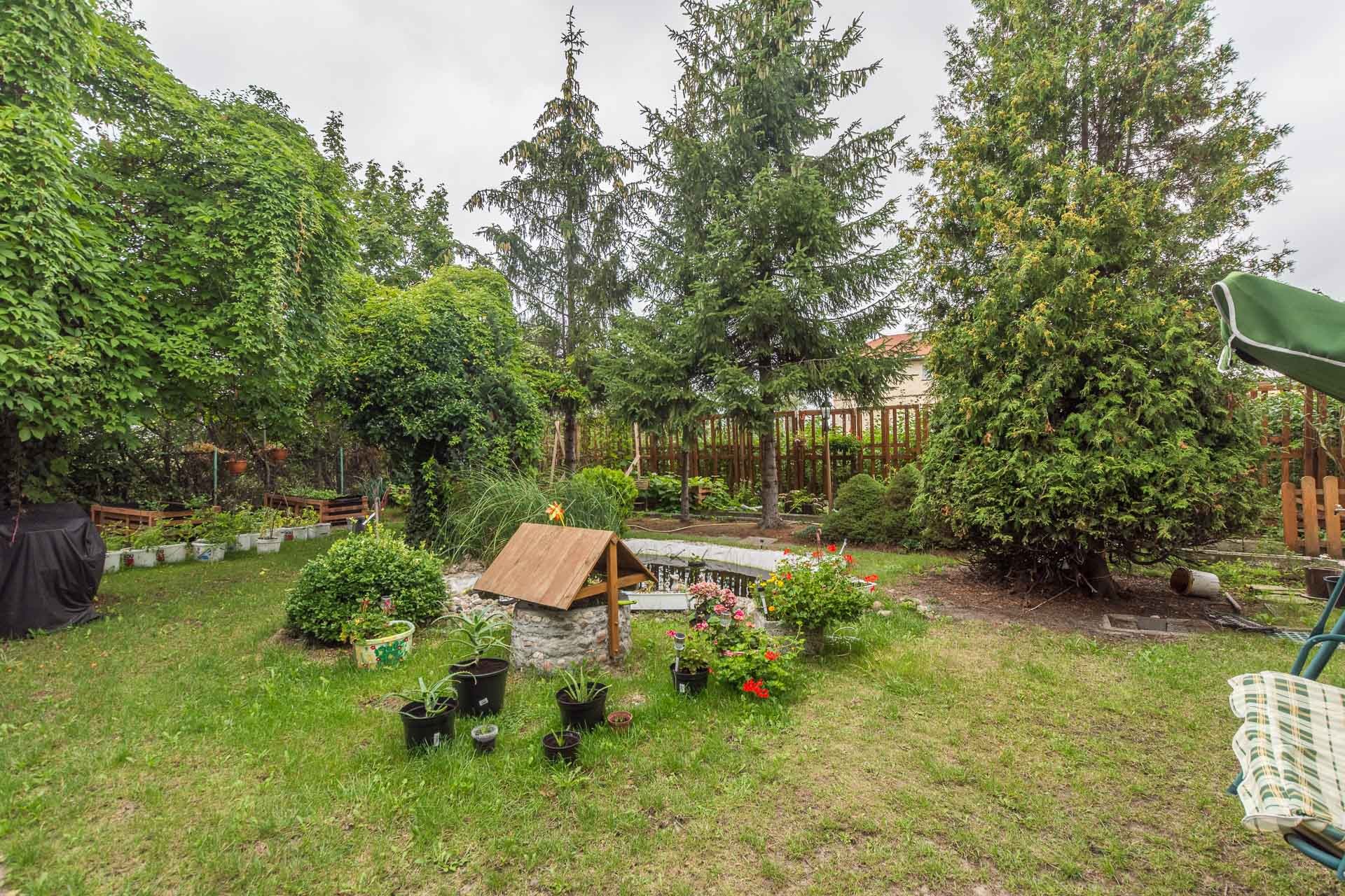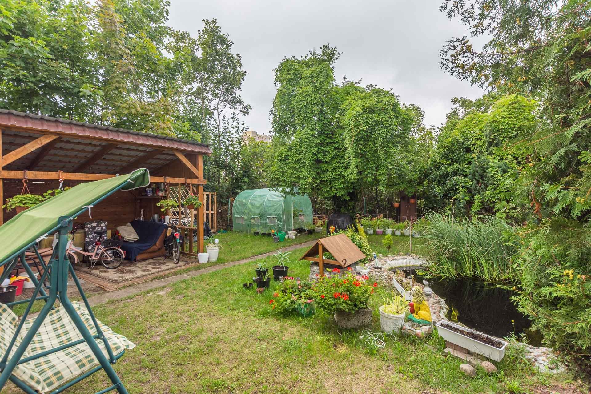 Do domy należy duży, zagospodarowany ogród z oczkiem wodnym, dzięki któremu czujemy się jak poza miastem.