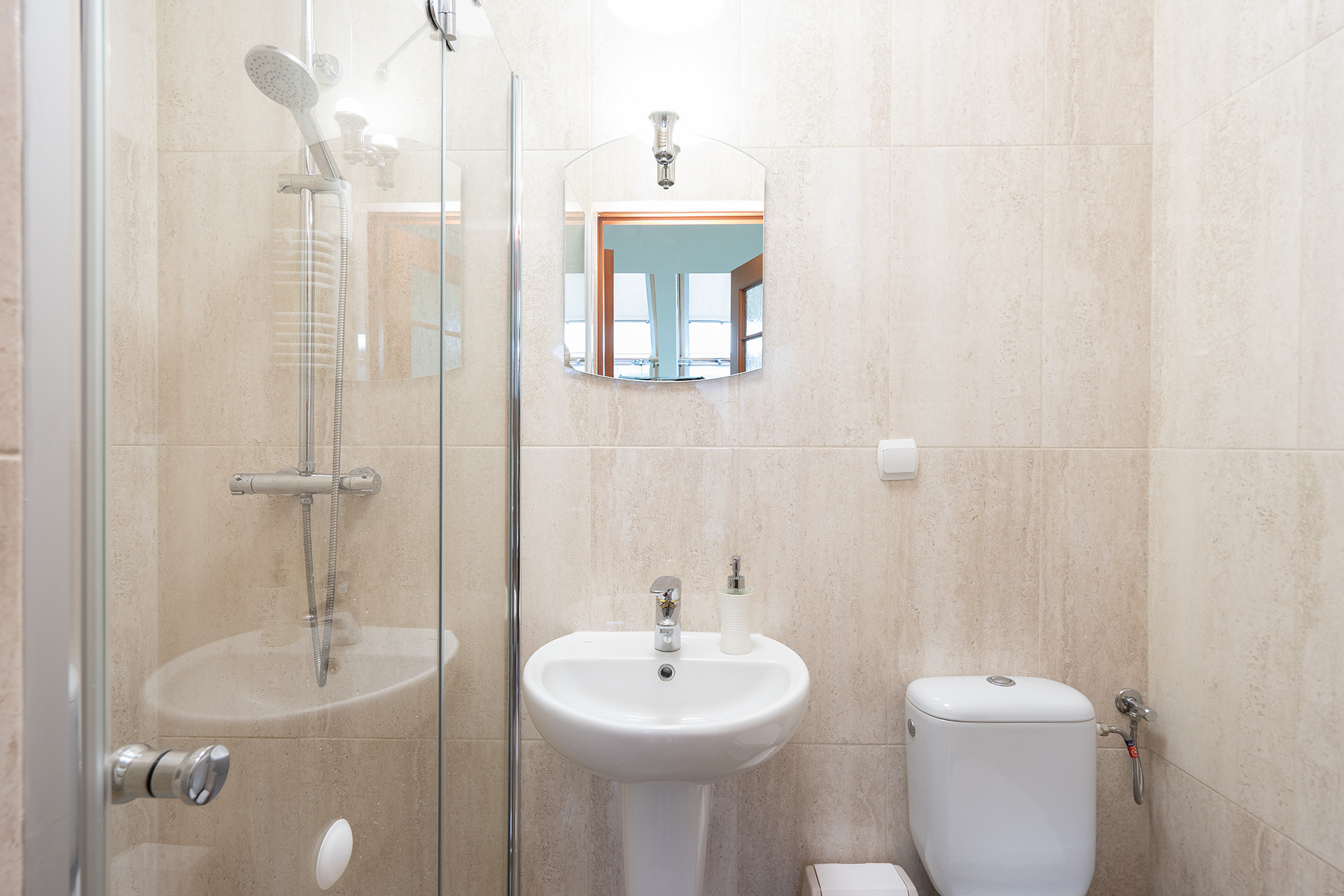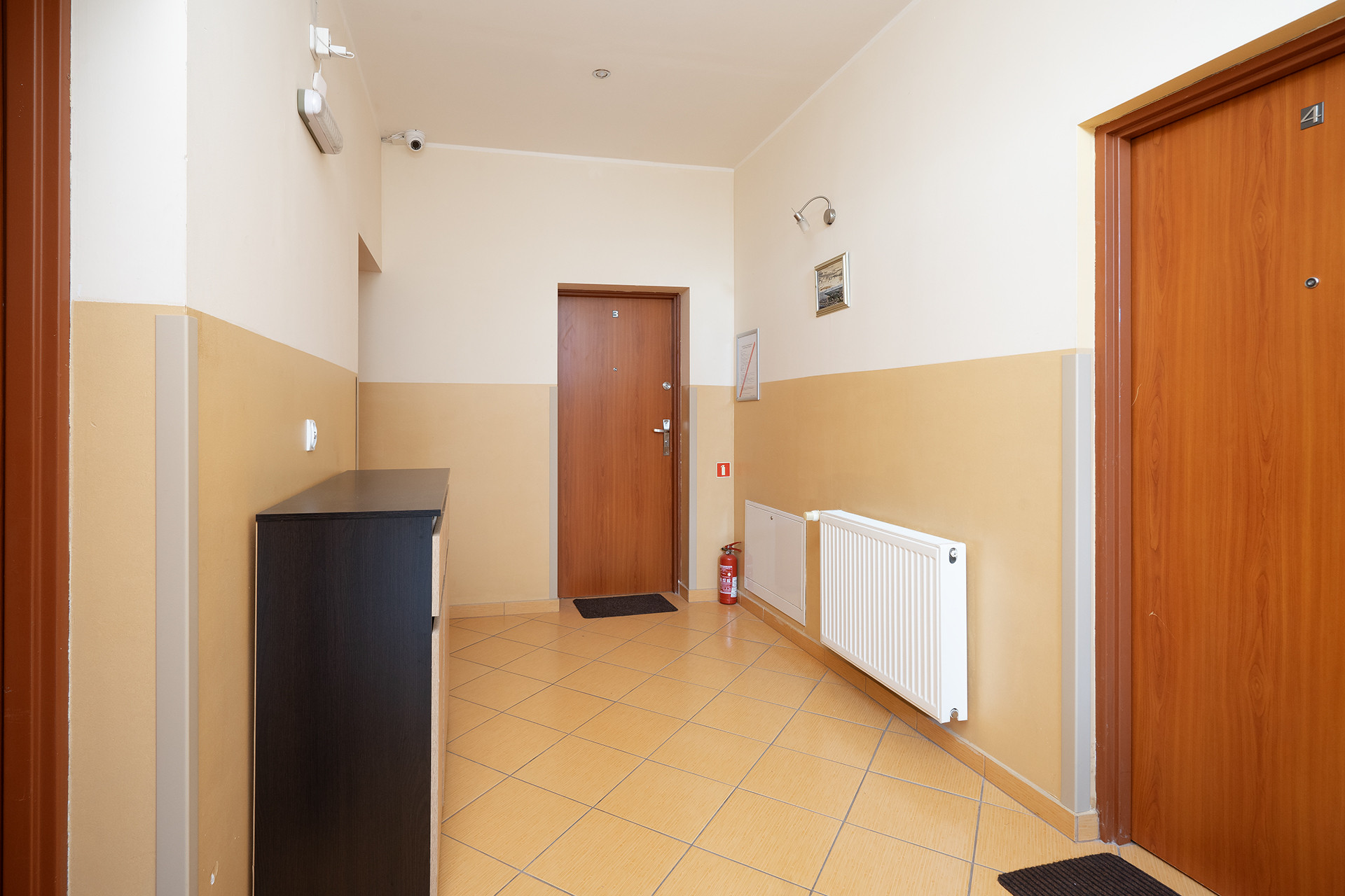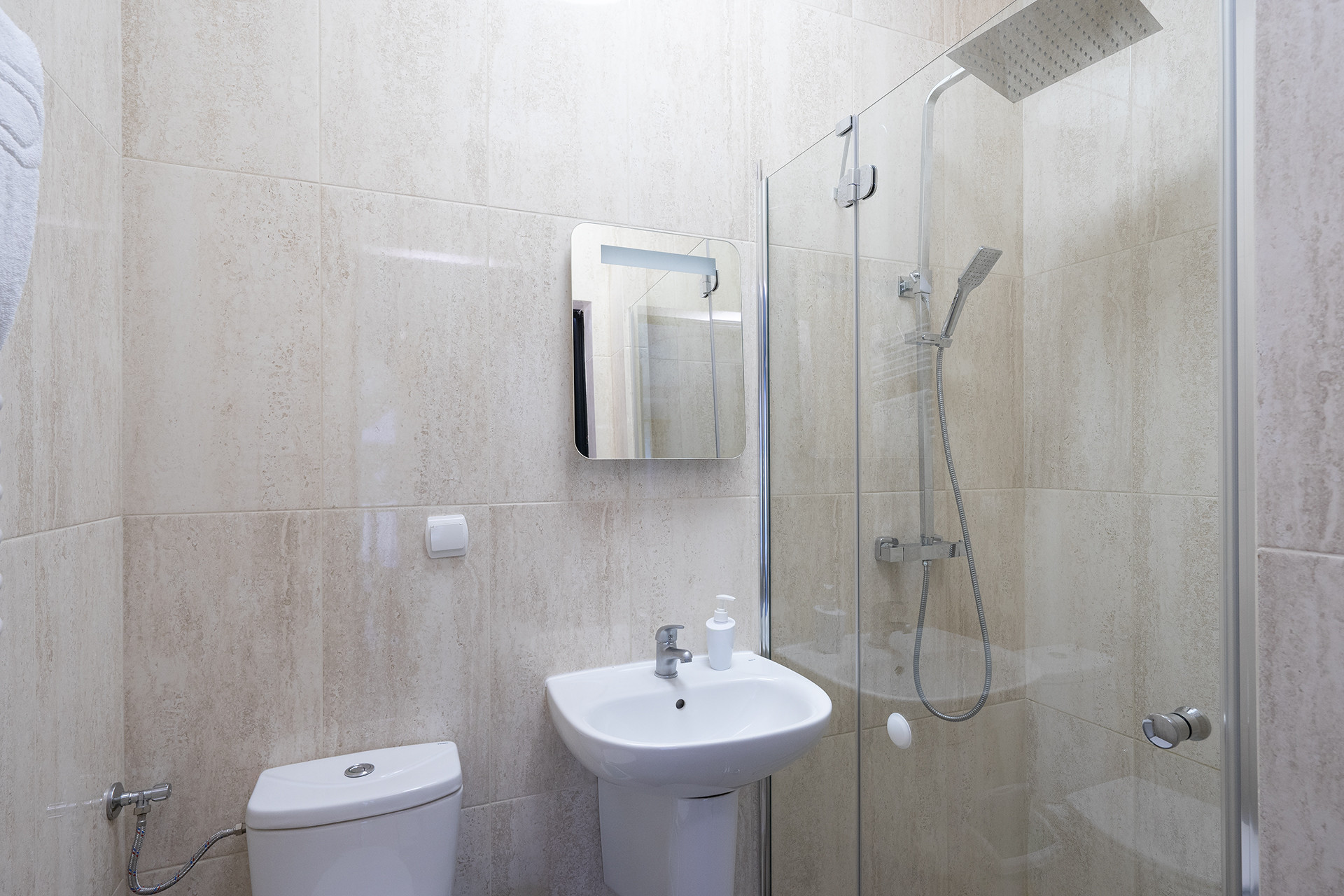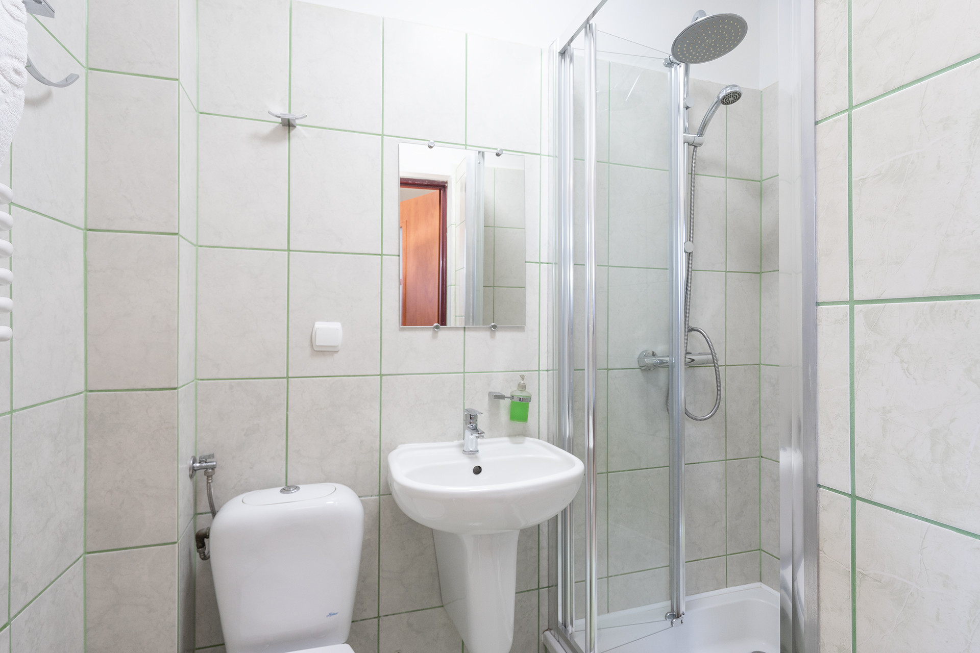 – Panele słoneczne na dachu budynku, podgrzewające wodę w sezonie letnim