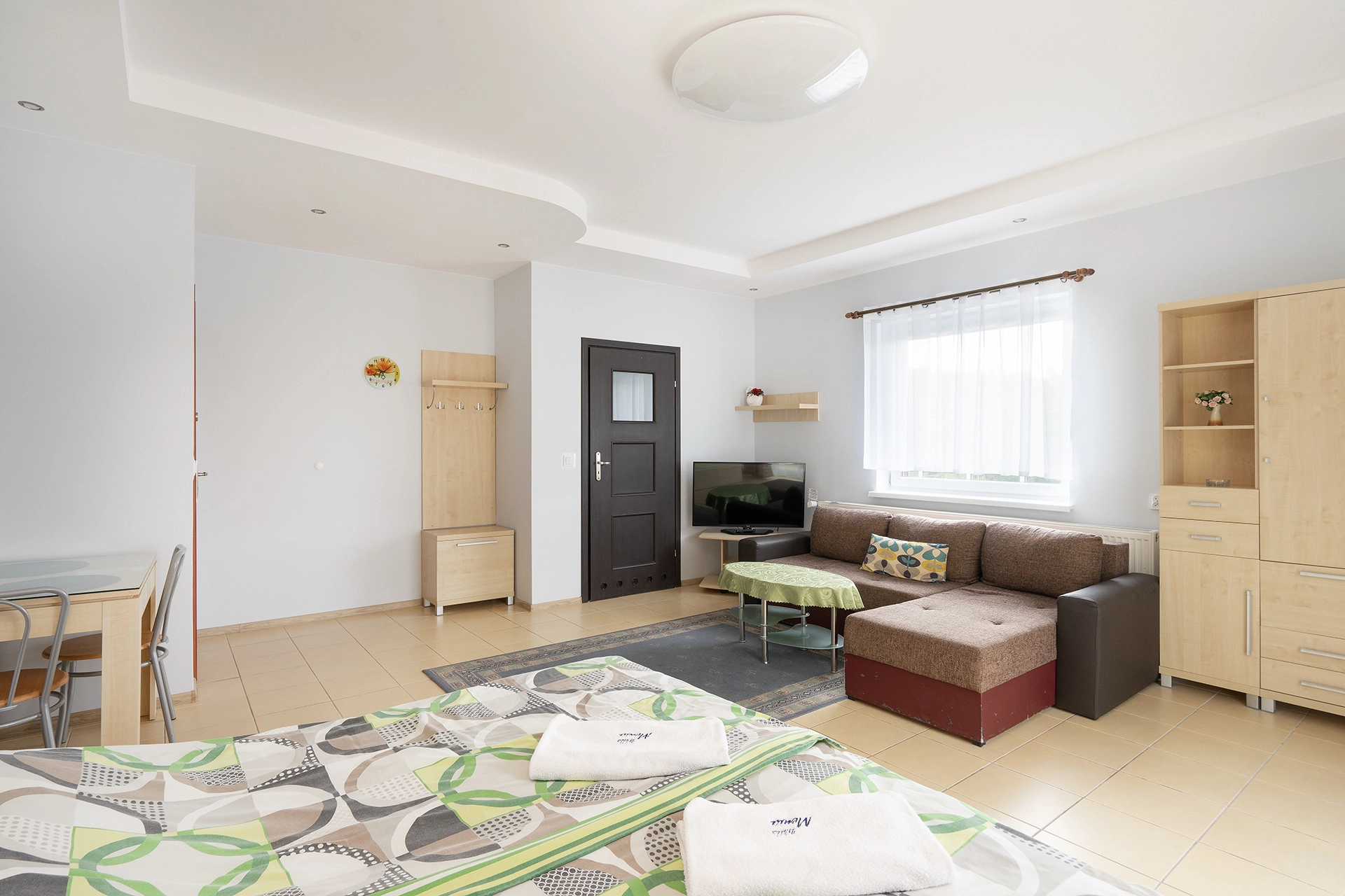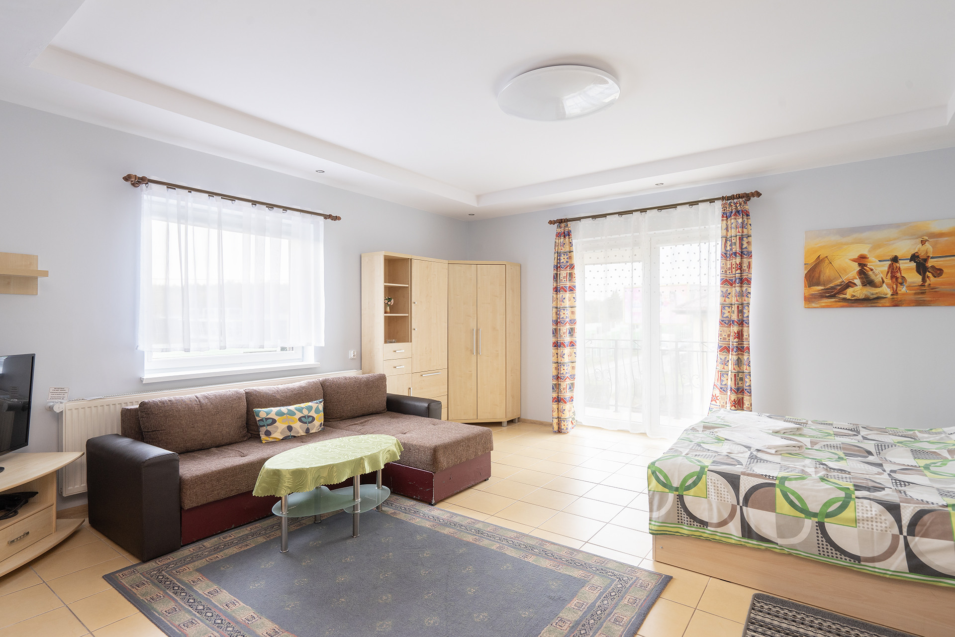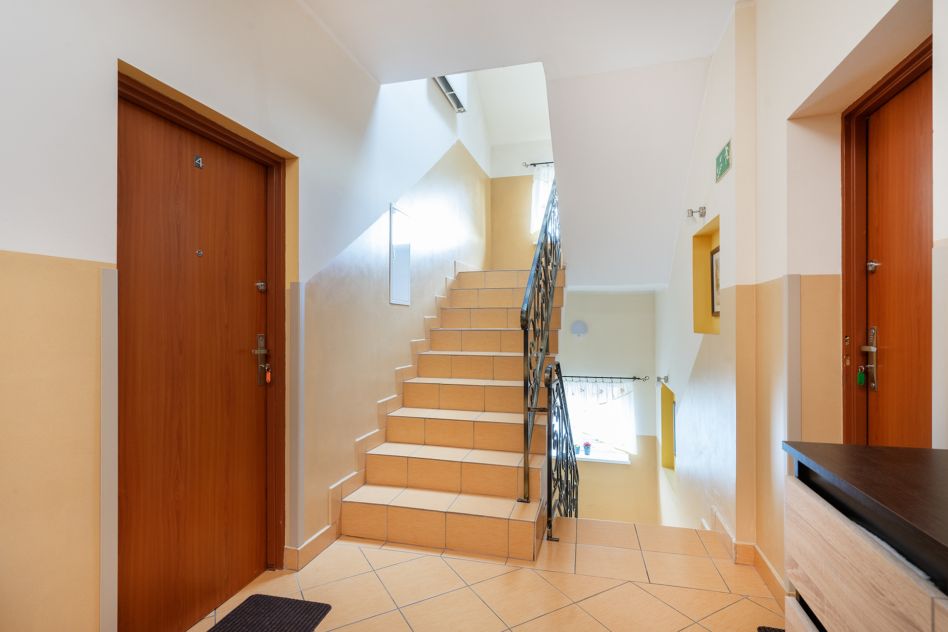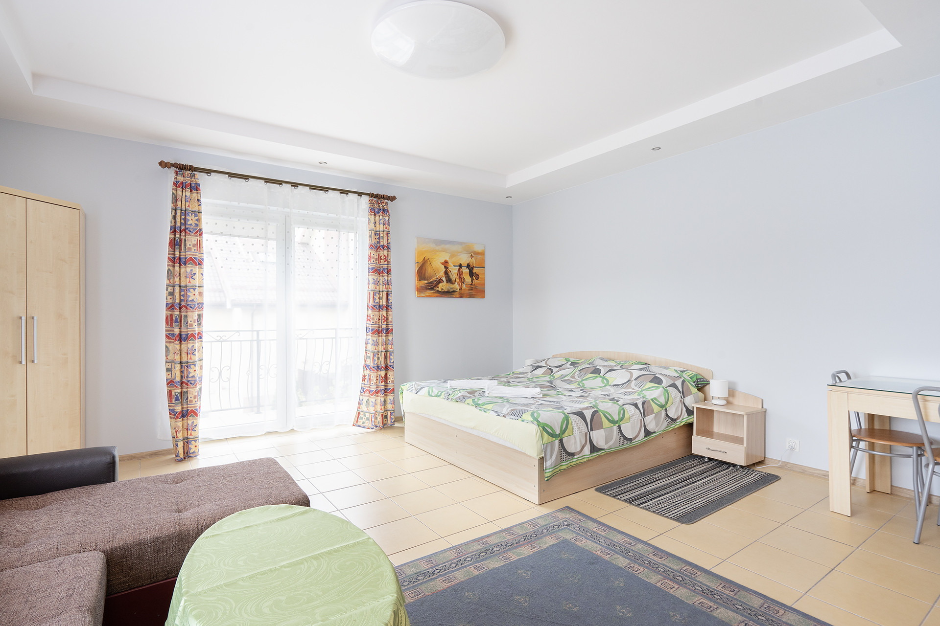 Składa się z 8 niezależnych pokoi z łazienkami, sali restauracyjnej, recepcji, zaplecza dla pracowników, kuchni, pralni i magazynu. Całkowita powierzchnia użytkowa to 350 m2. Nieruchomość jest bardzo ciekawie zaaranżowana. Dla gości wynajmujących pokoje, dwa niezależne wejścia do budynku. Pokoje o różnym poziomie wyposażenia, dostosowane do różnych potrzeb klientów. Znajdziemy tu apartament dla pary, czy też pokoje z pojedynczymi łóżkami. Dom ma w pełni wyposażoną kuchnie i zaplecze gospodarcze spełniające wymogi sanitarne i wszystkie standardy.